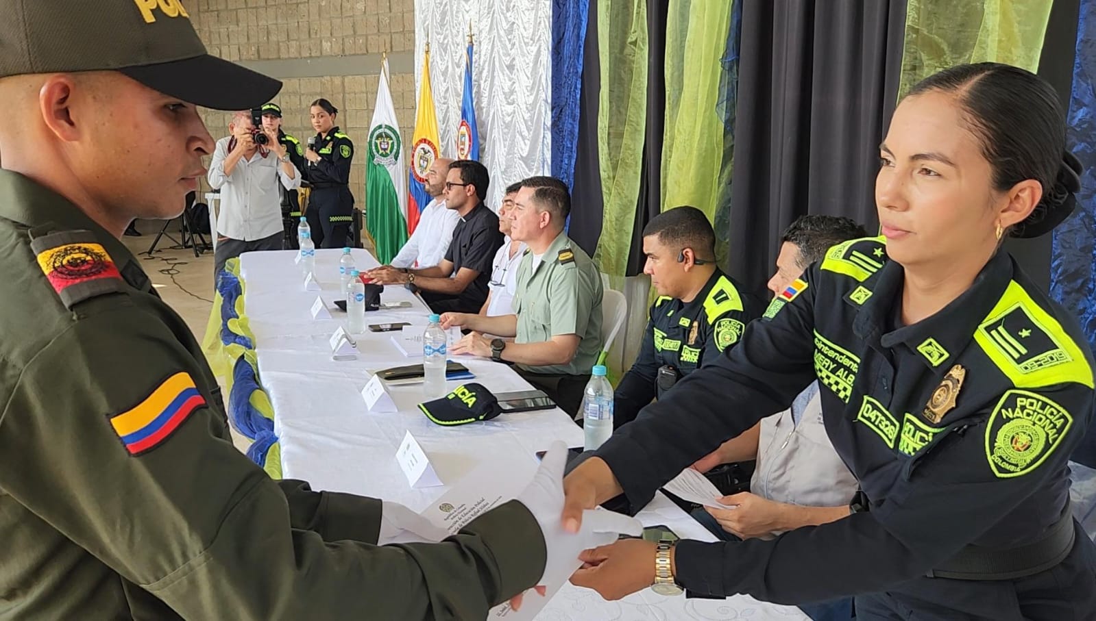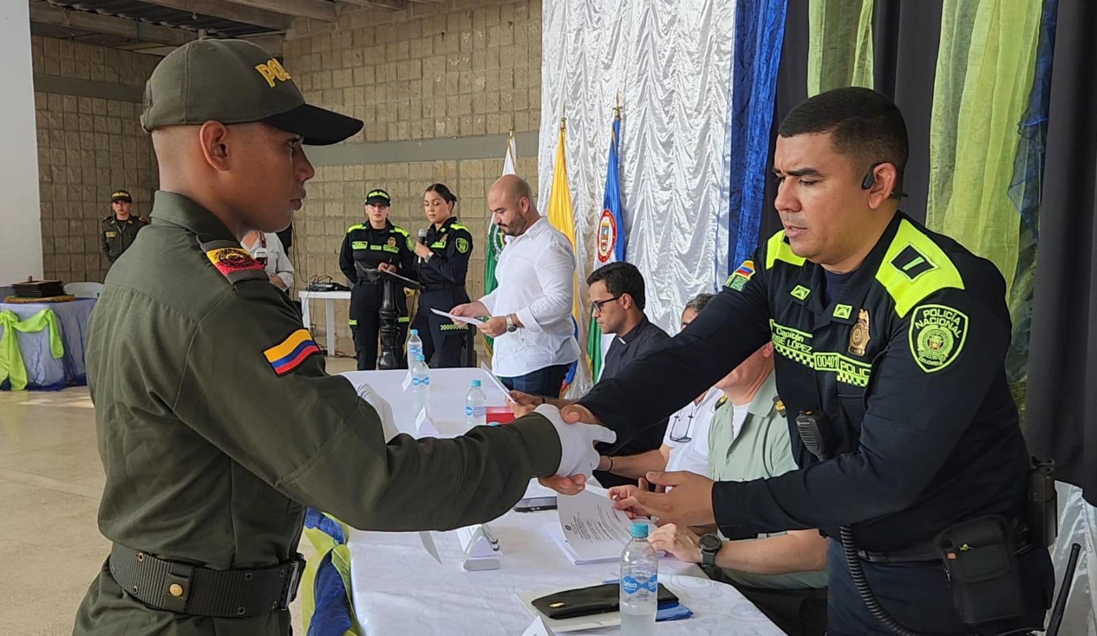 Córdoba. La ceremonia académica fue presidida por el señor coronel John Fredy Suárez Guerrero, comandante del departamento de Policía Córdoba, quien tomó el juramento de bandera de los 86 nuevos auxiliares de Policía (61 hombres y 25 mujeres), así mismo, enalteció la presencia de los asistentes al evento, quienes llegaron desde varias partes del departamento.