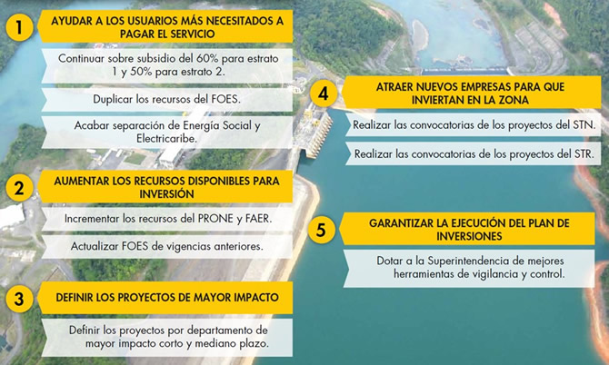 ¿Pero qué es Plan 5 Caribe? El pasado 12 de junio el Ministro de Minas y Energía Tomás González Estrada presentó un paquete de cinco medidas que optimizará y fortalecerá el servicio de energía eléctrica en el caribe colombiano, el avista una inversión de 4 billones de pesos, (3 aportados por el sistema tarifario eléctrico nacional y el resto por Electricaribe) en infraestructura energética en la Región Caribe.