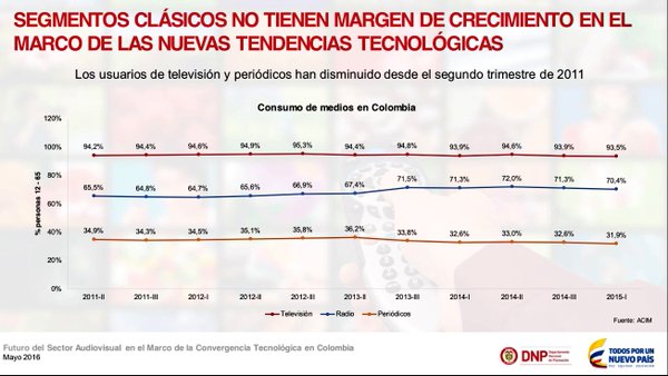"En Colombia, el 68% de la TV (o contenidos audiovisuales) ya se ve por Internet" Simón Gaviria, Director del Departamento Nacional de Planeación (DNP). Interesante debate y análisis del Departamento Nacional de Plantación, en la Universidad Externado de Colombia #LaTVdelFuturo.