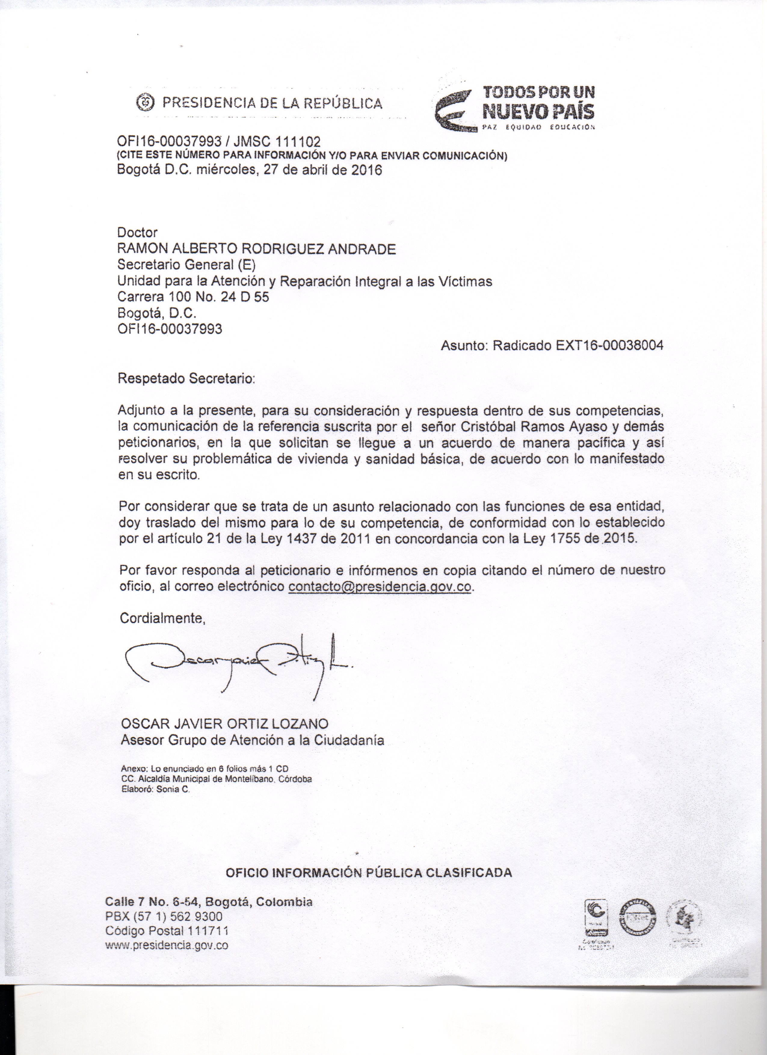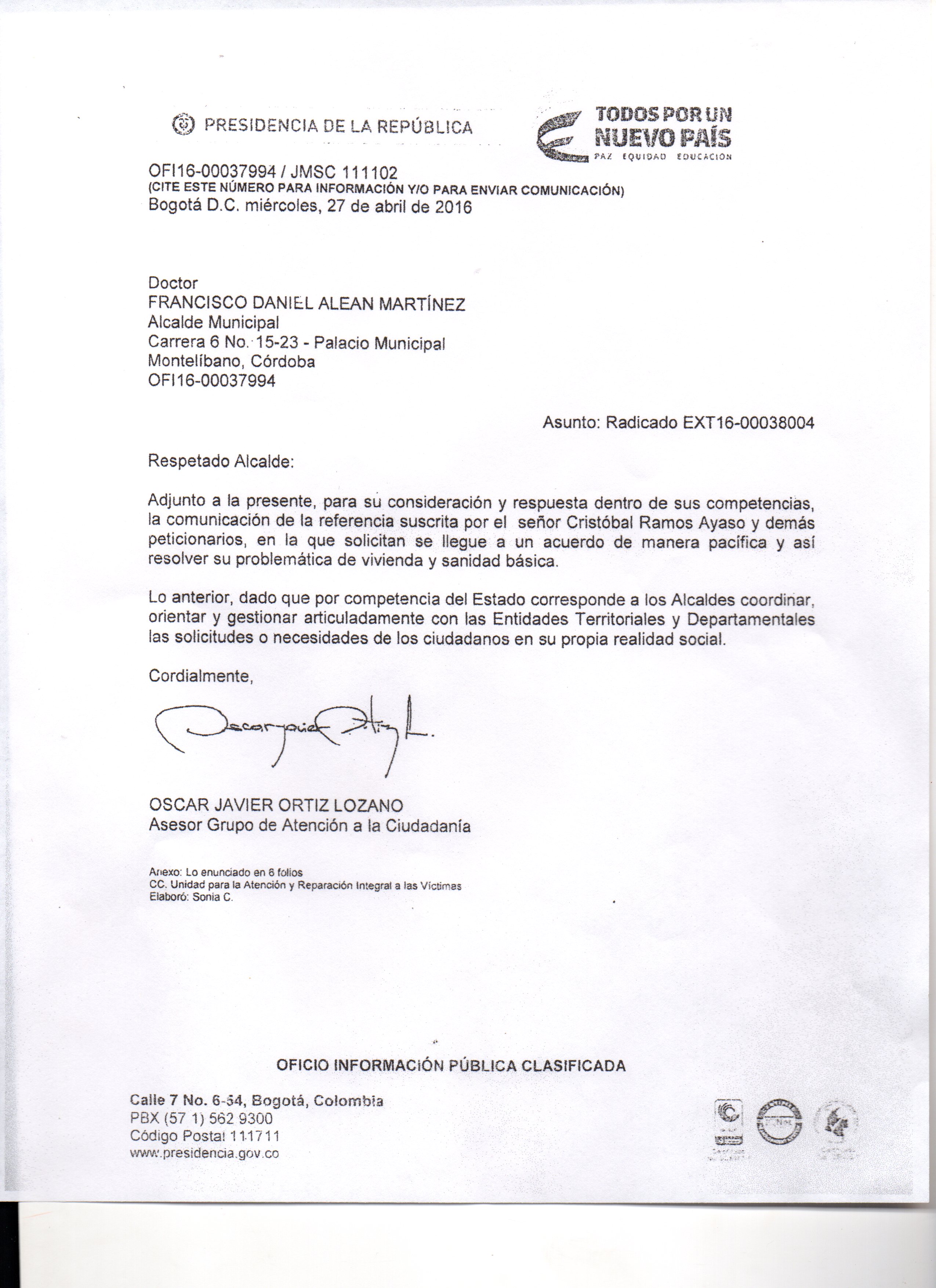 Han tocado puertas, han recurrido a diferentes entidades y esperan ayuda, ya sea que la administración compre el terreno o les dé un lugar para ser reubicado, en su necesidad y ante la vulneración a la que según ellos se han visto sometidos, han recurrido a la Diócesis de Montelíbano, al ICBF, a la presidencia de la república y otras entidades.