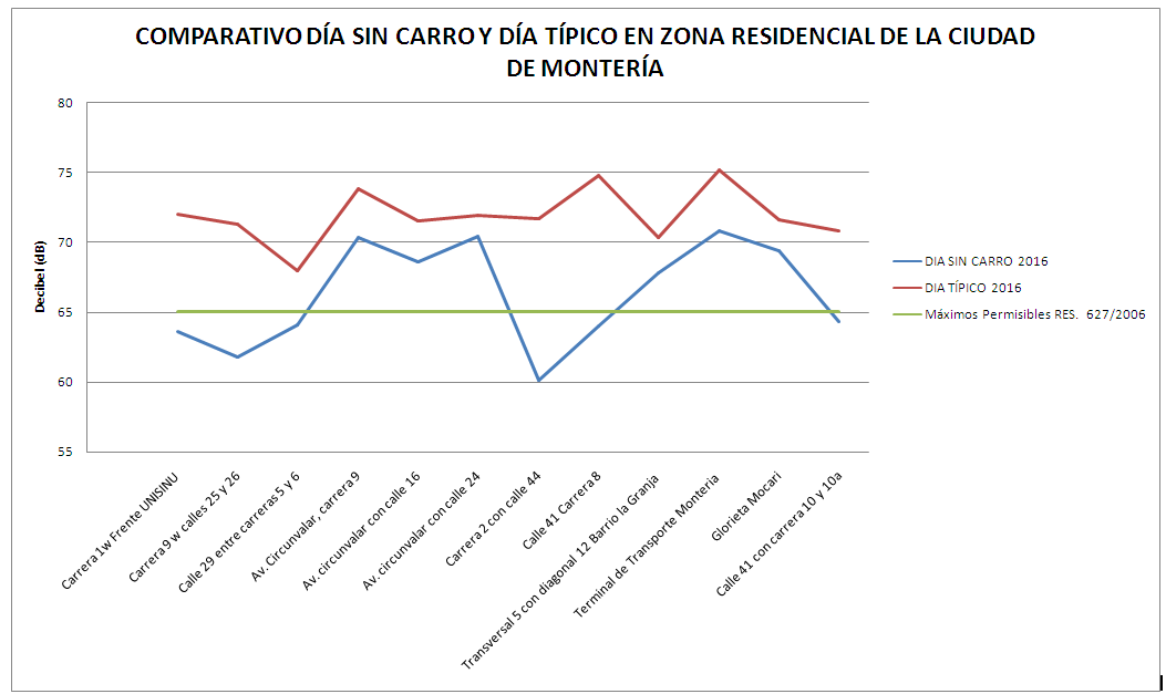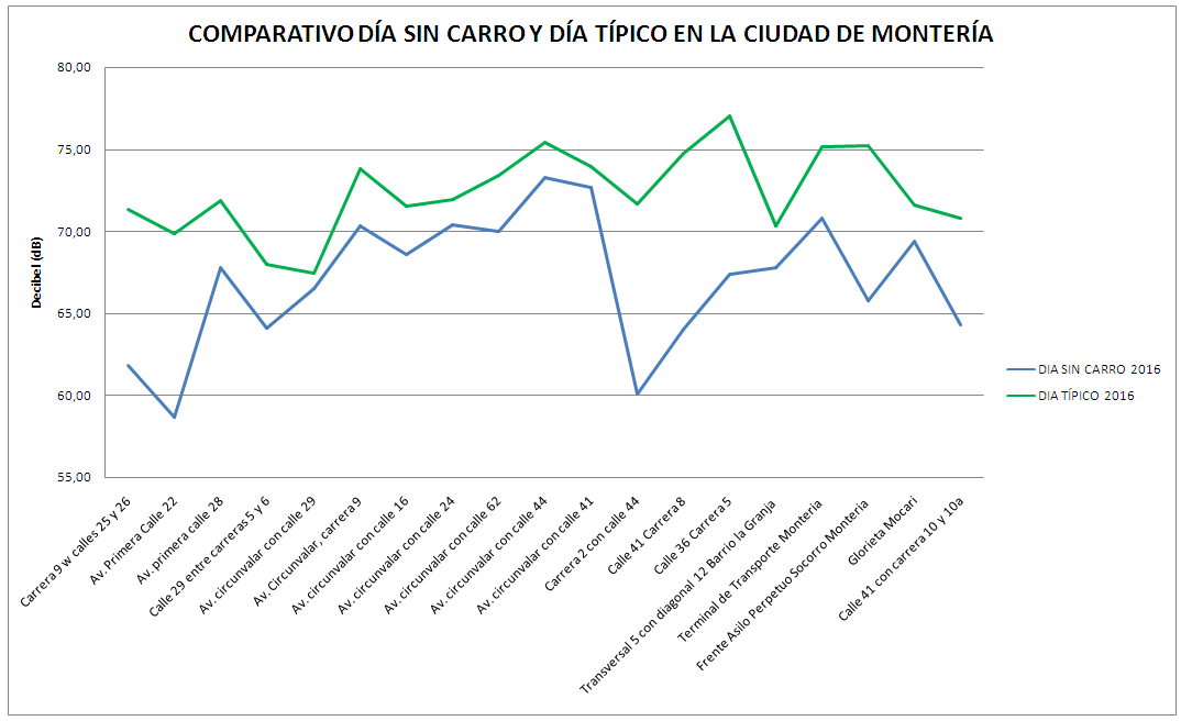 Figura 1. Comparativo de ruido ambiental en el día sin carro vs. día típico en la ciudad de Montería