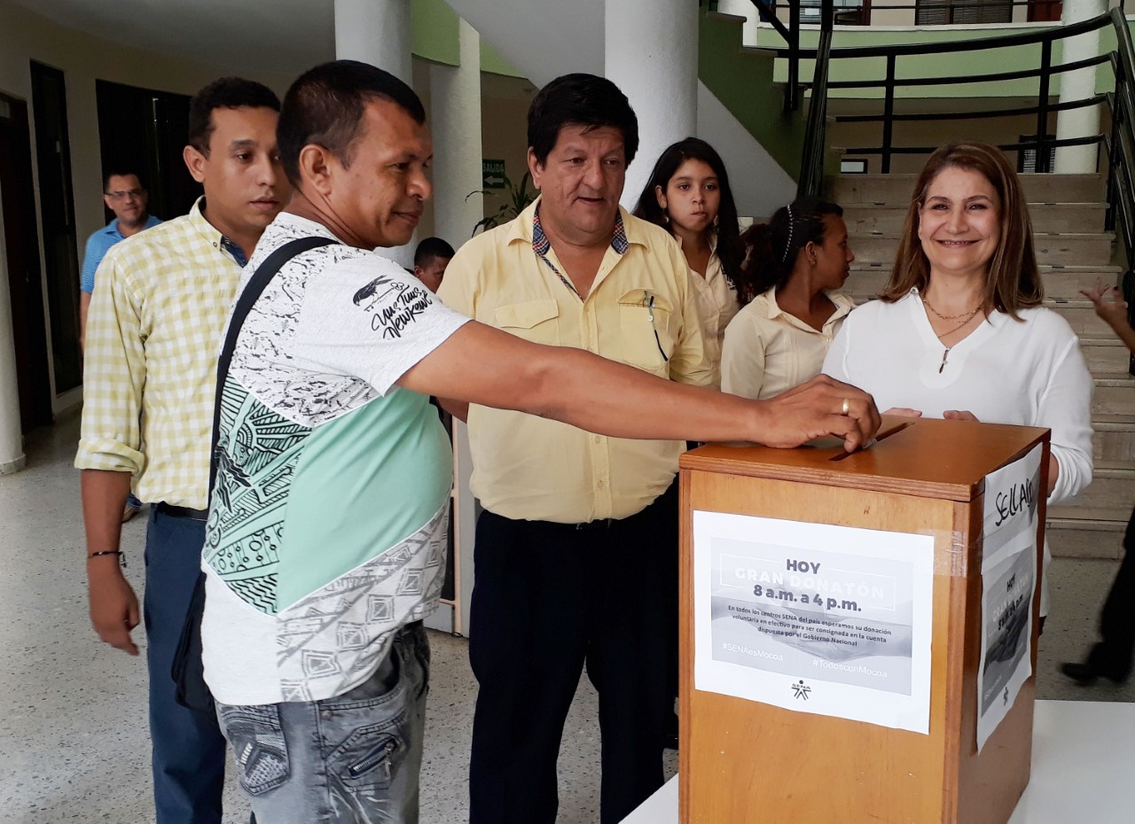 La Dirección General del SENA, en cabeza de María Andrea Nieto, agradeció a toda la familia SENA que decididamente se unió a esta iniciativa para contribuir con sus hermanos colombianos que lo perdieron todo. “Con esta respuesta se demostró que ´Todos somos Mocoa’ y que esta contribución voluntaria va a servir para que Mocoa se levante”, indicó la funcionaria.