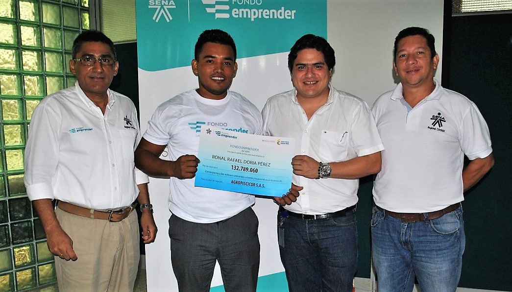El acuicultor Ronal Rafael Doria Pérez, de 28 años de edad y natural de San Pedro de Urabá, fue uno de los beneficiados de la convocatoria número 50 del Fondo Emprender SENA en el departamento de Córdoba. Como él, otras tres personas más de esta región, resultaron favorecidas con capital semilla para crear sus propios negocios.