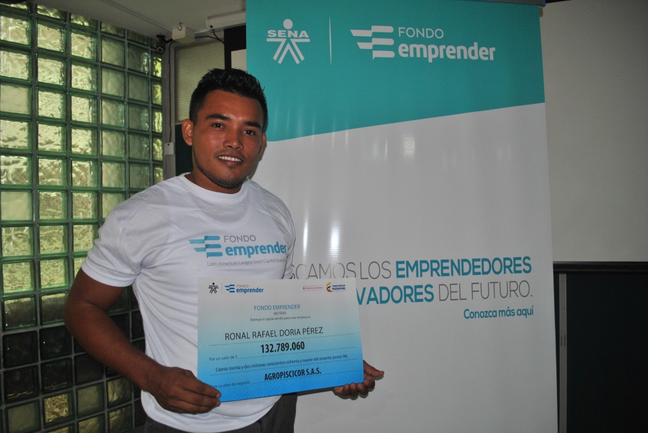 “Soy el segundo de 14 hermanos, hijo de padres campesinos y me vine junto a otros familiares a vivir en Córdoba desplazado por la violencia. Estudié con sacrificio y me superé. En 2015 me gradué de la Universidad de Córdoba como acuicultor. Hoy empiezo a hacer realidad el sueño de contar con mi propio negocio y ayudar a mi familia”, resalta Ronal Rafael Doria Pérez, a quien le aprobaron $132.789.060 para la puesta en marcha de su empresa Agropiscicor S.A.S., en el municipio de San Pelayo.