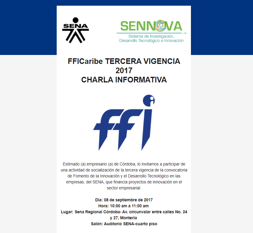 Montería. Hasta el próximo 22 de septiembre estará abierta la fase de pre-inscripción del Fondo de Fomento de la Innovación y Desarrollo Tecnológico, FFI, para las empresas de la región Caribe que estén interesadas en participar de esta nueva vigencia 2017.