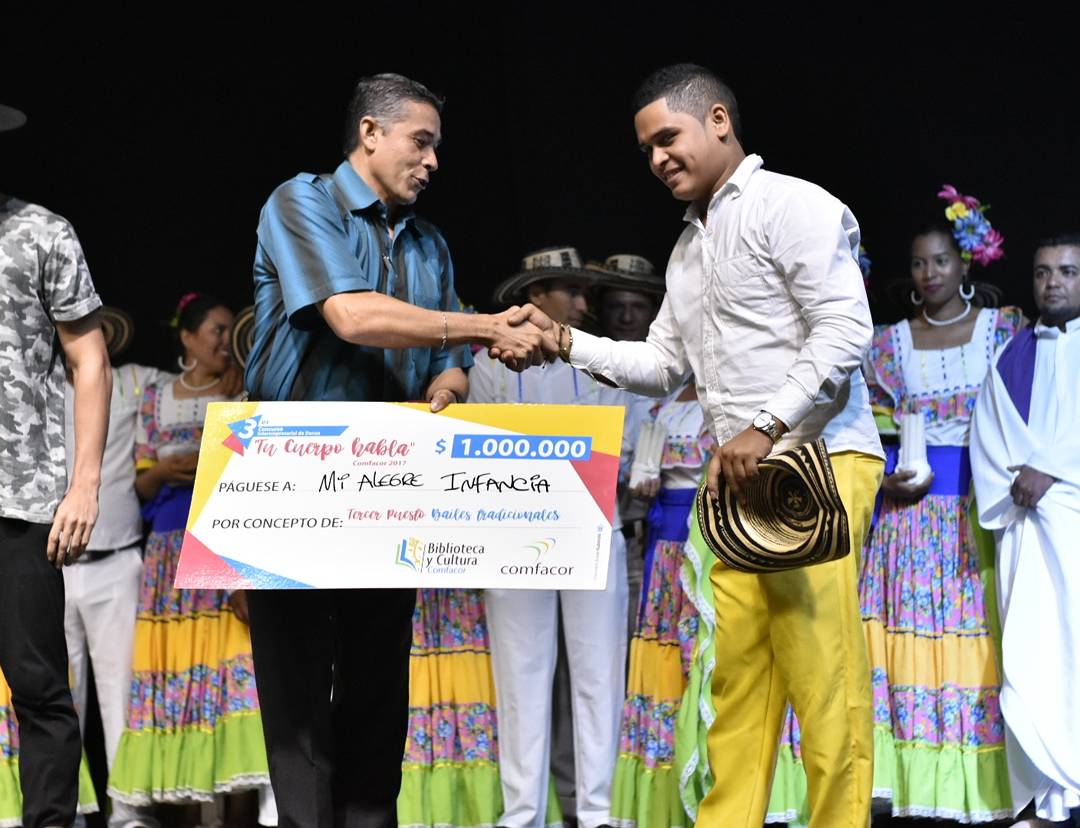 Al final en ritmos tradicionales nuevamente se impuso la IE Victoria Manzur, con su puesta en escena de gaita y fandango con jornada de siembra campesina: una combinación de teatro y baile popular callejero. La coordinadora Esperanza Meza, dijo que el premio de tres millones de pesos se invertirá en vestuario y elementos de trabajo para el grupo de más de diez integrantes, que duraron seis meses ensayando el montaje del número que conquistó al jurado.