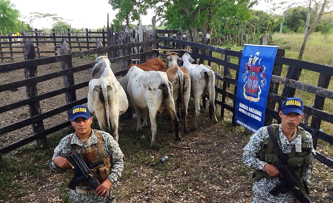 Sucre. En el desarrollo de dos operaciones de registro y control militar de área, la Armada Nacional logró la recuperación de 38 semovientes en el departamento de Sucre. En una operación llevada a cabo en el sector Mataguasimo, del municipio de Galeras, tropas del Batallón de Infantería de Marina No.14 recuperaron 31 semovientes vacunos y un semoviente equino avaluados aproximadamente 32 millones de pesos.