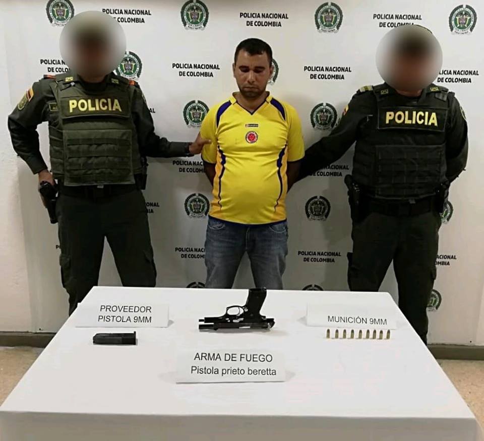 Los dos sujetos fueron identificados como Edinson Molina y Jorge Rosero de 26 y 41 años de edad respectivamente, quienes al practicarle un registro personal fueron sorprendidos portando un arma de fuego tipo pistola calibre 9mm marca Prieto Beretta y un revólver calibre 38mm marca Llama con munición para las mismas.