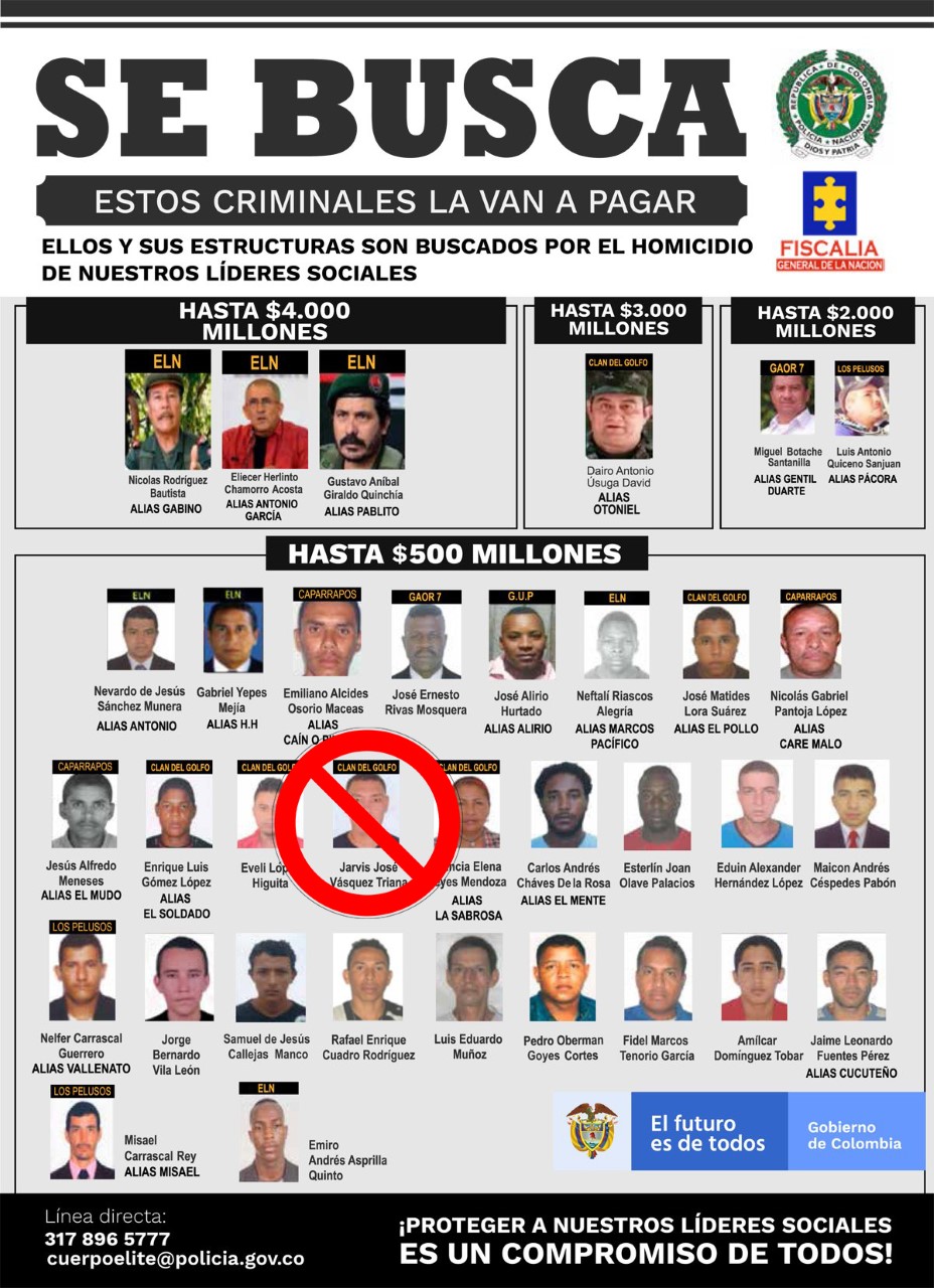 Este hombre, aparece referenciado en el listado de recompensas divulgado por la presidencia de la República, como presunto responsable de homicidios de líderes sociales en Córdoba.