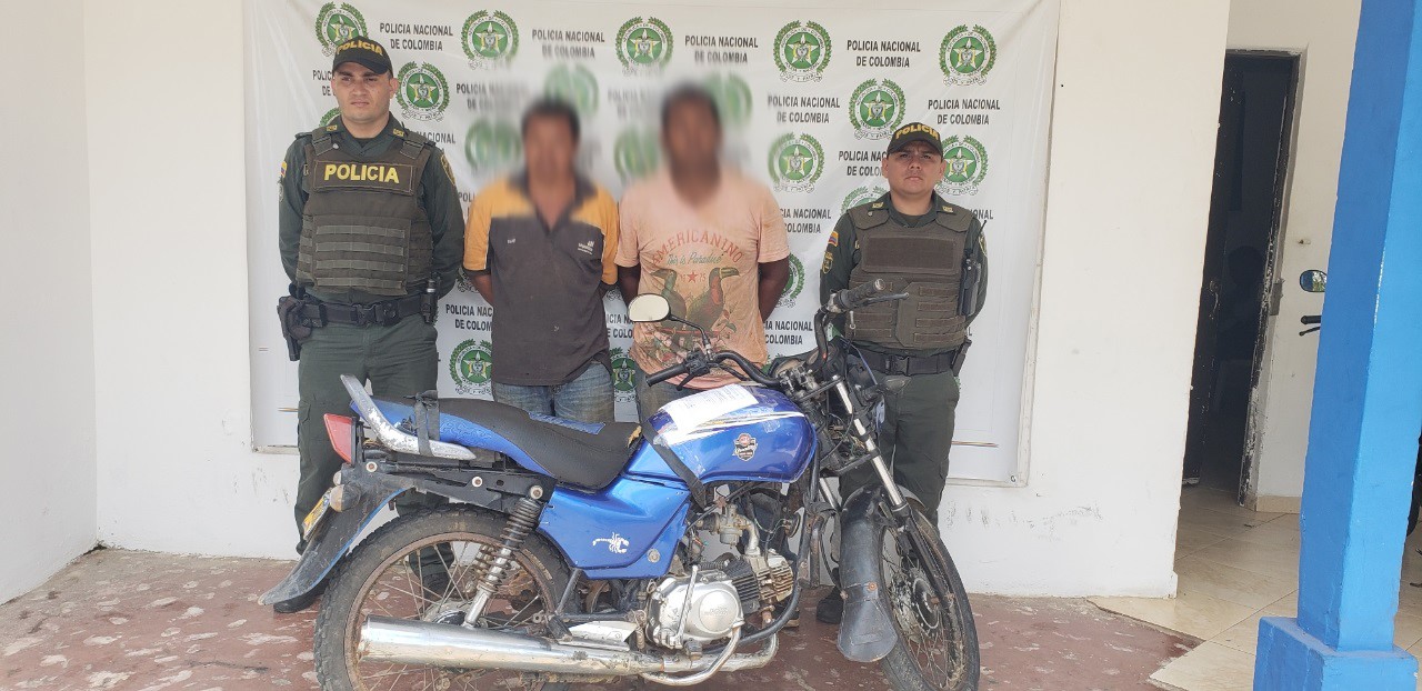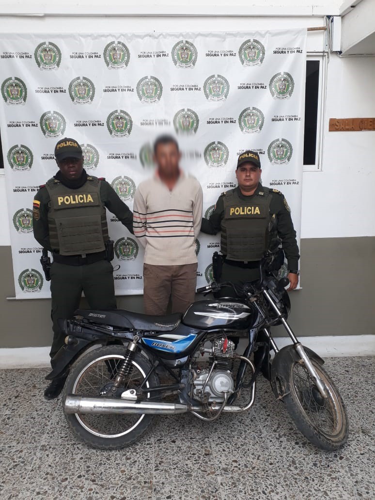 Por otro lado, en la vía que conduce de Montelíbano a La Apartada y en zona rural de Cotorra, se logra la captura de tres hombres de 26, 29 y 38 años de edad, por el delito de receptación, los cuales fueron sorprendidos por los uniformados cuando se movilizaban en dos motocicletas marca Honda y Bajaj de placas AQR-40A y MTU-40B, avaluadas en la suma de $5’900.000; al verificarles antecedentes en el sistema de la Policía Nacional, se logró determinar que se encontraban reportadas como hurtadas.