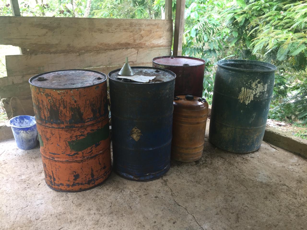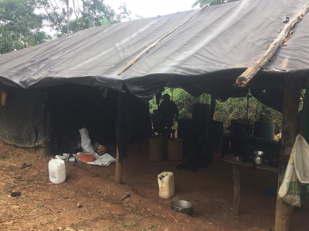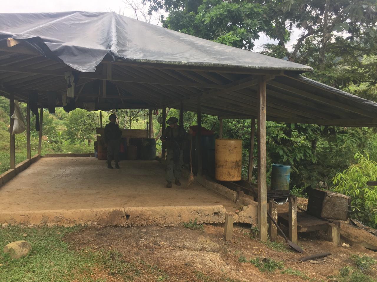 Los laboratorios estaban compuestos por construcciones rusticas los cuales se encontraban camuflados en la espesa vegetación propia de la zona, ubicando los siguientes elementos: 595 galones de insumos líquidos, 08 galones de base de coca en solución, 70 galones de amoníaco, 60 kilogramos de cal, 6 prensas manuales, 6 escurrideros, 3 pesas tipo reloj y una gramera, los cuales eran utilizados para el procesamiento de estupefacientes.