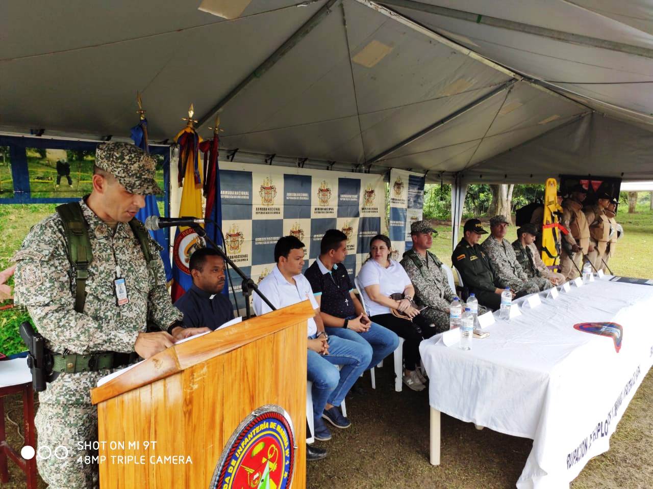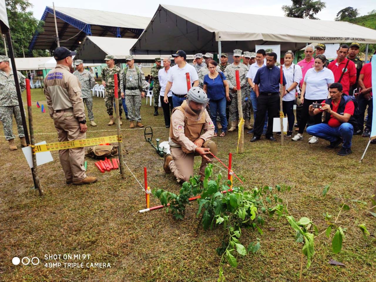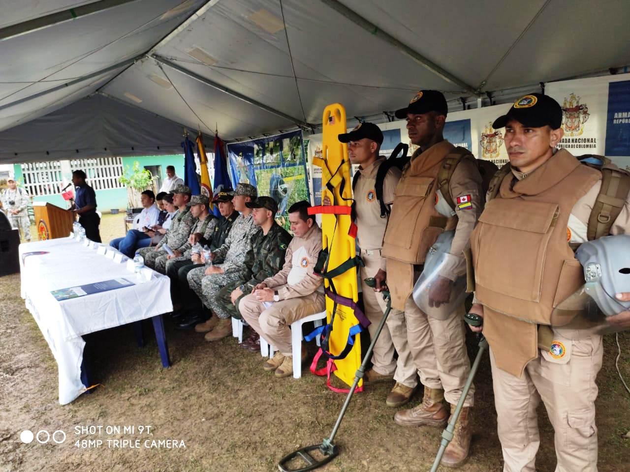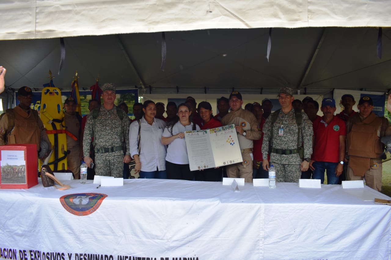 El evento fue presidido por el Teniente Coronel de I.M. Evert Andrés Mejía Giraldo, Comandante Encargado de la Brigada de Infantería de Marina No.1, y contó con la participación de la Compañía de Desminado Humanitario No.1 de la Armada de Colombia, la Gobernación de Sucre, la Casa de la Paz, la Coordinación de atención a víctimas del conflicto armado, Alcaldía de Ovejas, líderes campesinos, así como delegados internacionales de la Organización de Estados Americanos y la Organización de las Naciones Unidas.