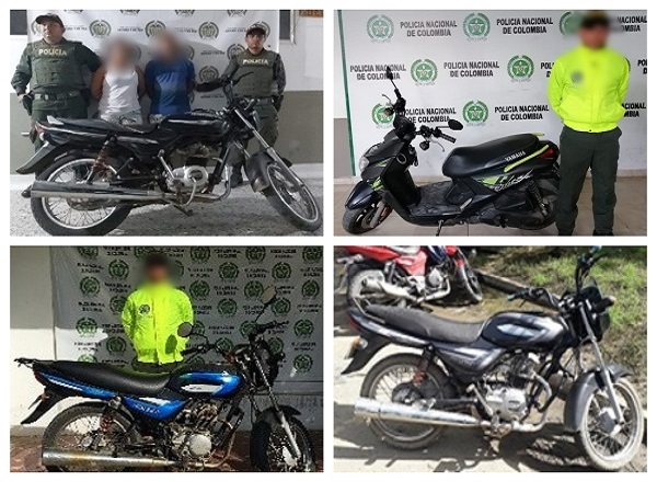 Córdoba. Según información oficial en desarrollo de la cuarta fase del Plan de Choque, ‘Construyendo Seguridad, la Policía Nacional de todos los colombianos, a través de uniformados adscritos al Modelo Nacional de Vigilancia Comunitaria por Cuadrantes con el apoyo de la Seccional de Investigación Criminal SIJIN, logró la recuperación de cuatro motocicletas y la captura de dos personas.