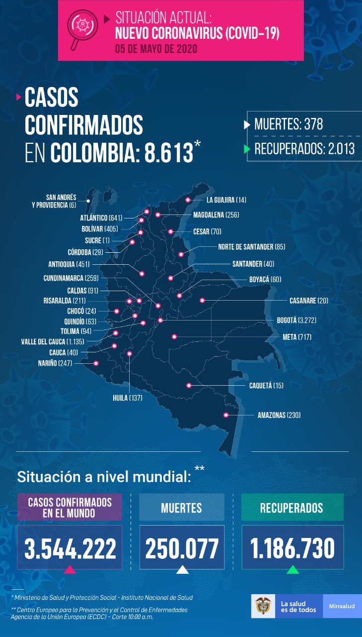 Nacional. Colombia ha venido registrando en los últimos días un crecimiento vertiginoso de contagios de coronavirus, el registro más elevado es el de este 05 de mayo, donde no solo se han superado los más de 8.000 mil contagios, sino que, en un solo día, el registro es de 640 nuevos casos reportados por Ministerio de Salud.