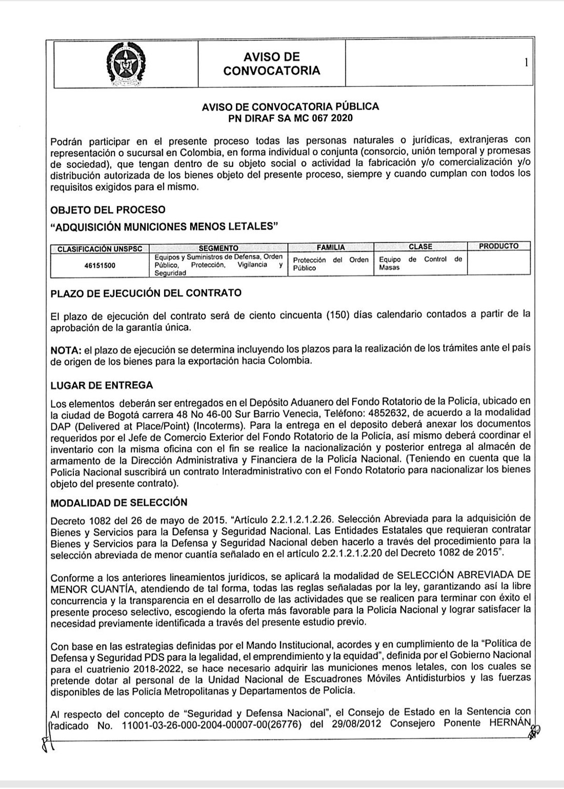 Nacional. En medio de la pandemia y de una nueva emergencia económica se conoce la denuncia del senador, Wilson Arias Castillo, tras asegurar que. “En plena pandemia, $9.500 millones de pesos se va a gastar el Gobierno comprando para el ESMAD, 81.000 gases lacrimógenos y 13.000 balas como con las que asesinaron a Dilan. La contratación la iniciaron el pasado 20 de abril”.