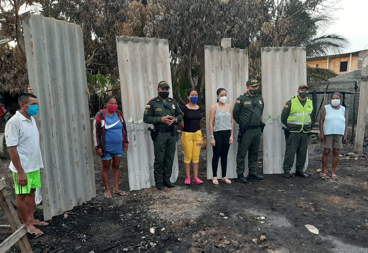 Momil, Córdoba. La Policía Nacional y la Alcaldía de esta localidad, cumpliendo con su propósito de estar siempre al servicio de la ciudadanía ante cualquier eventualidad, brindan atención a las familias que lo perdieron todo en voraz incendio la madrugada del pasado jueves 13 de agosto de 2020.