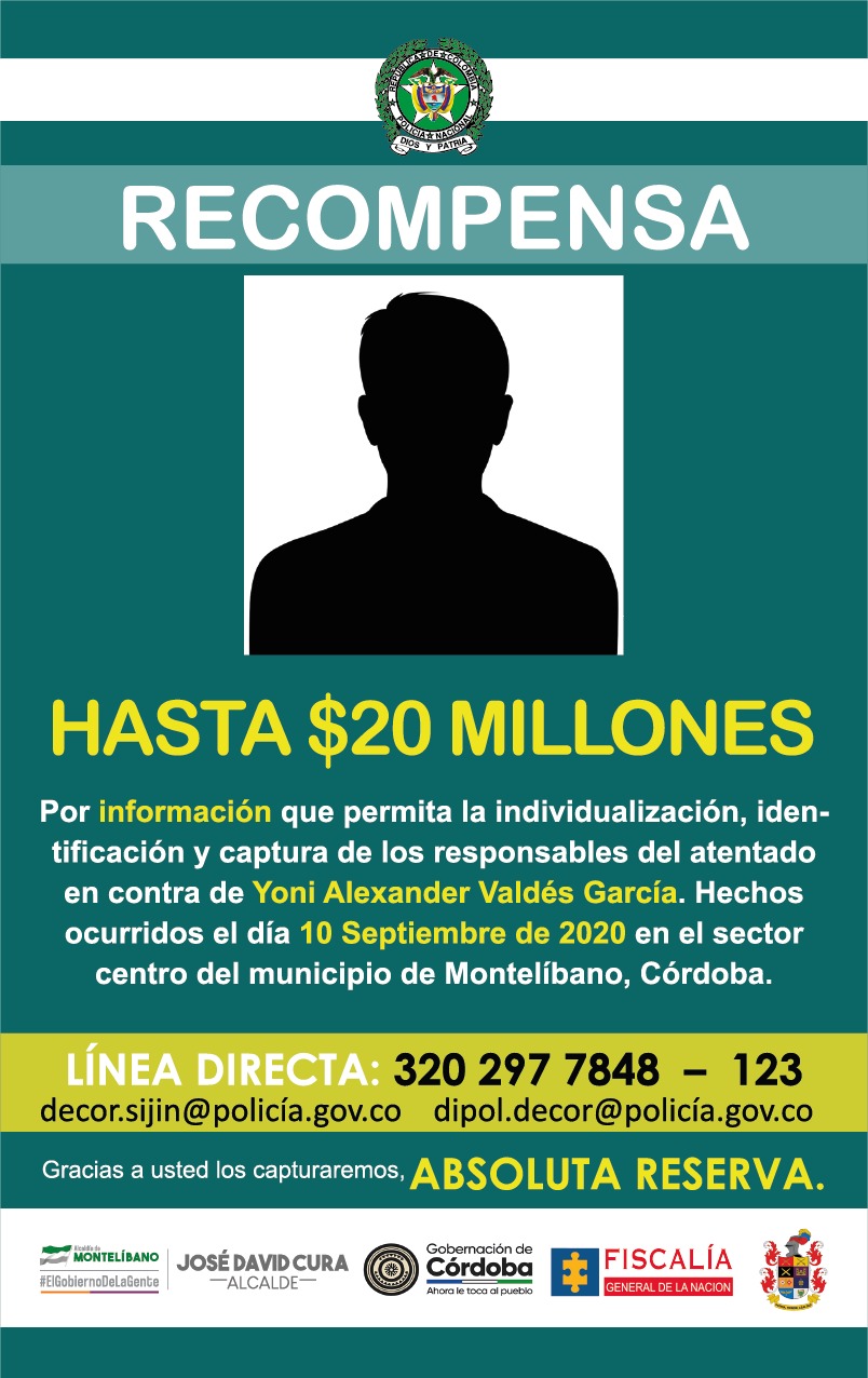 De igual manera de dispuso de una recomoensa de hasta 20 millones de pesos por información que permita identificar a los autores del presunto caso de fleteo del que fue víctima el presidente del Concejo Municipal de San José de Uré, Yoni Alexander Valdés García, ocurrido el pasado 14 de septiembre.