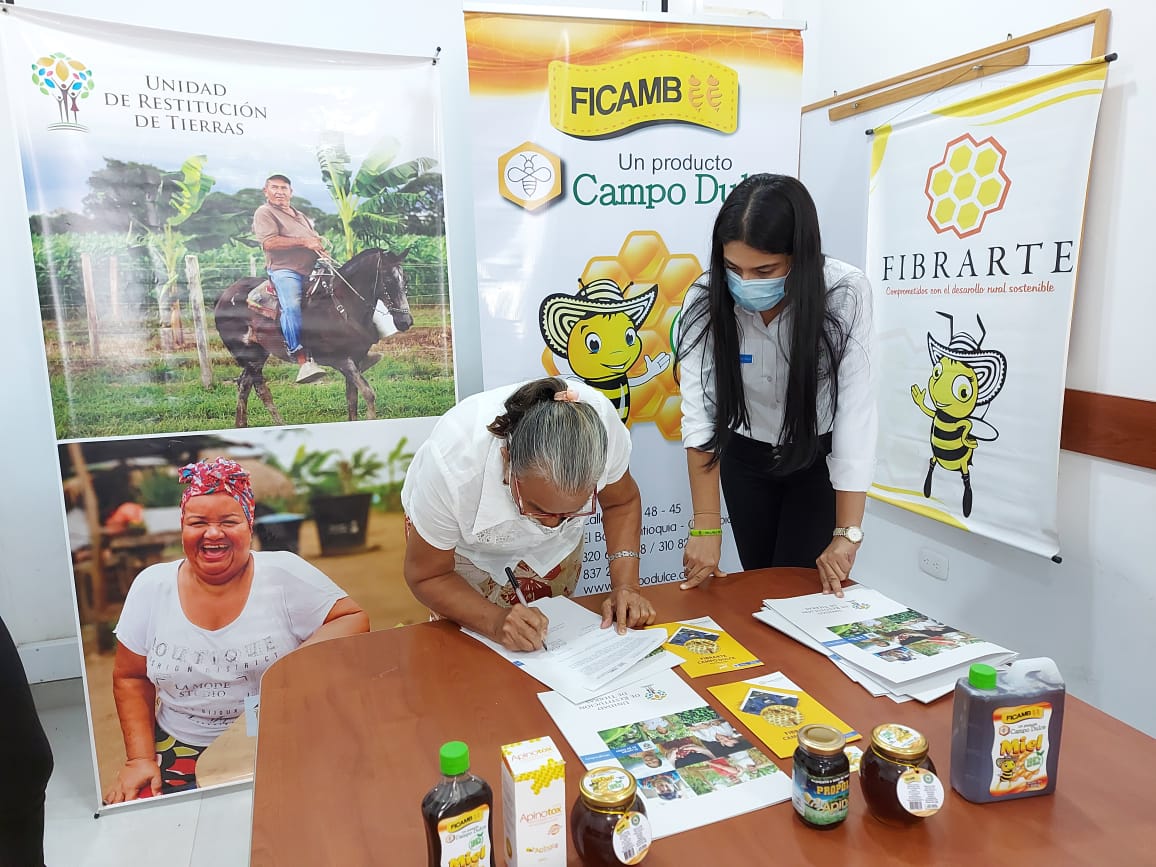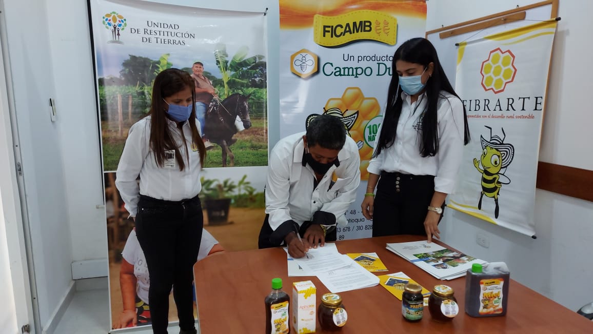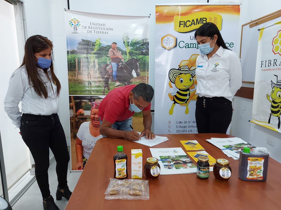 Por su parte, Adolfo Baltazar, beneficiario de restitución en la vereda Luis Cano de El Bagre y quien viajó a Montería para firmar el contrato de compraventa de miel relató, “abandoné mi predio en el 2012 porque los grupos armados tenían azotada la zona y en el 2018 un juez de restitución me devolvió mi parcelita de una hectárea, ahora estoy lleno de esperanza y expectativas con el montaje de las colmenas y la producción de miel”.