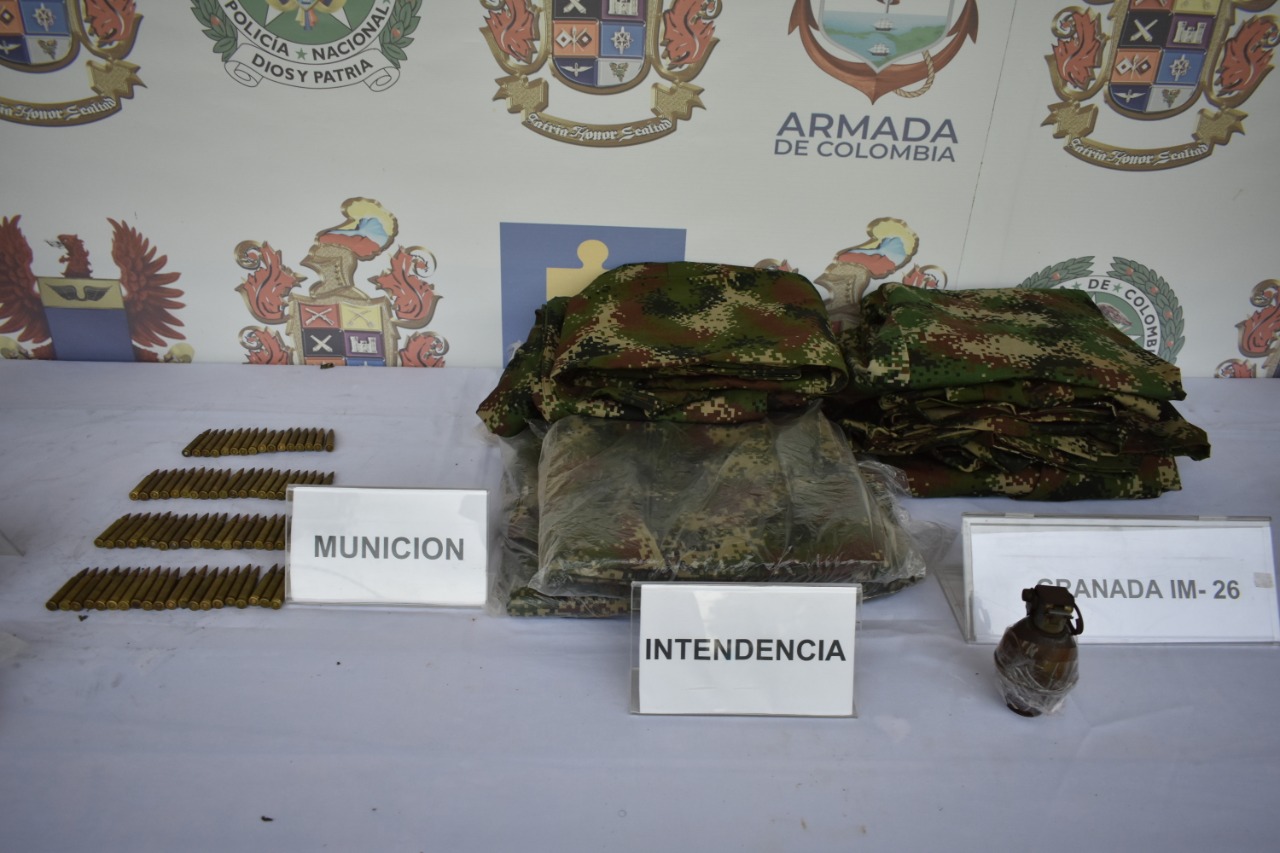 Durante la aperación militar se incautó un arma larga, tipo fusil; siete equipos de campaña, cuatro equipos de comunicación, una granada, cuatro proveedores y munición de guerra. En esta maniobra también se logró el rescate de una persona mayor de edad, quien trabajaba como barequero de la región y fue entregado a sus familiares. Luego de acompañar el proceso de actos urgentes, el neutralizado y el material incautado fueron entregados a las autoridades judiciales competentes.