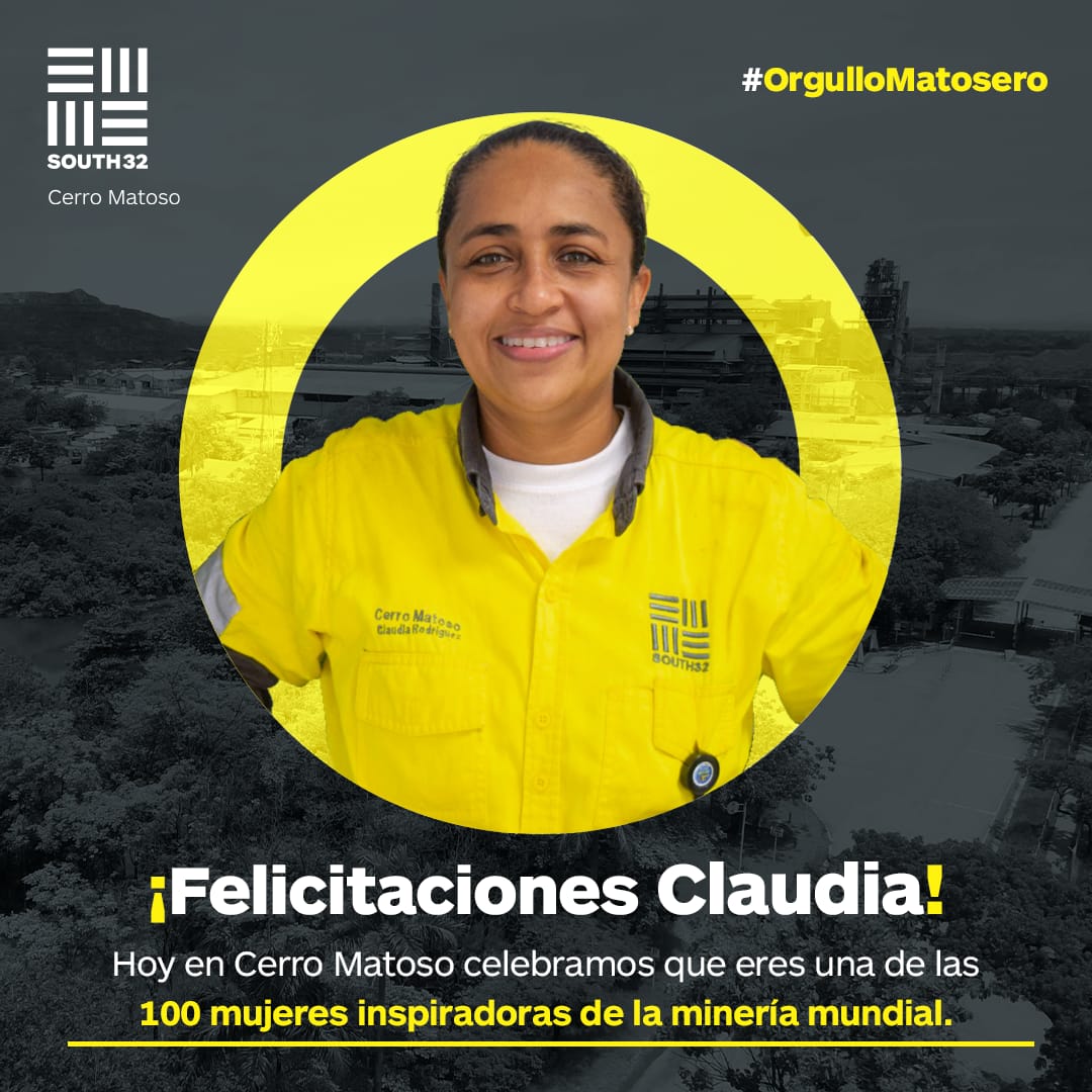 Montelíbano. Claudia Rodríguez, líder de Crisis y Emergencias de Cerro Matoso, fue reconocida como una de las 100 mujeres inspiradoras en la minería a nivel global según la ONG Women in Mining del Reino Unido que destacó la contribución realizada por 100 mujeres al sector minero y la sociedad, después de recibir más de 620 postulaciones provenientes de 356 empresas en 60 países.