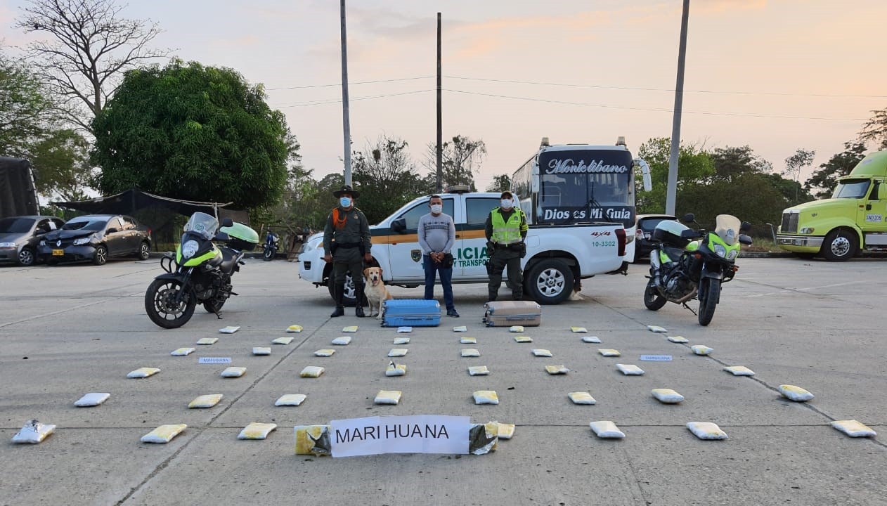 Córdoba. Según las auoridades, en desarrollo de actividades de control adelantadas por la Seccional de Tránsito y Transporte y el Guía canino del Departamento de Policía Córdoba, se realizó la captura de un hombre de 40 años de edad al ser sorprendido transportando 40 kilos de marihuana en un bus de servicio público.