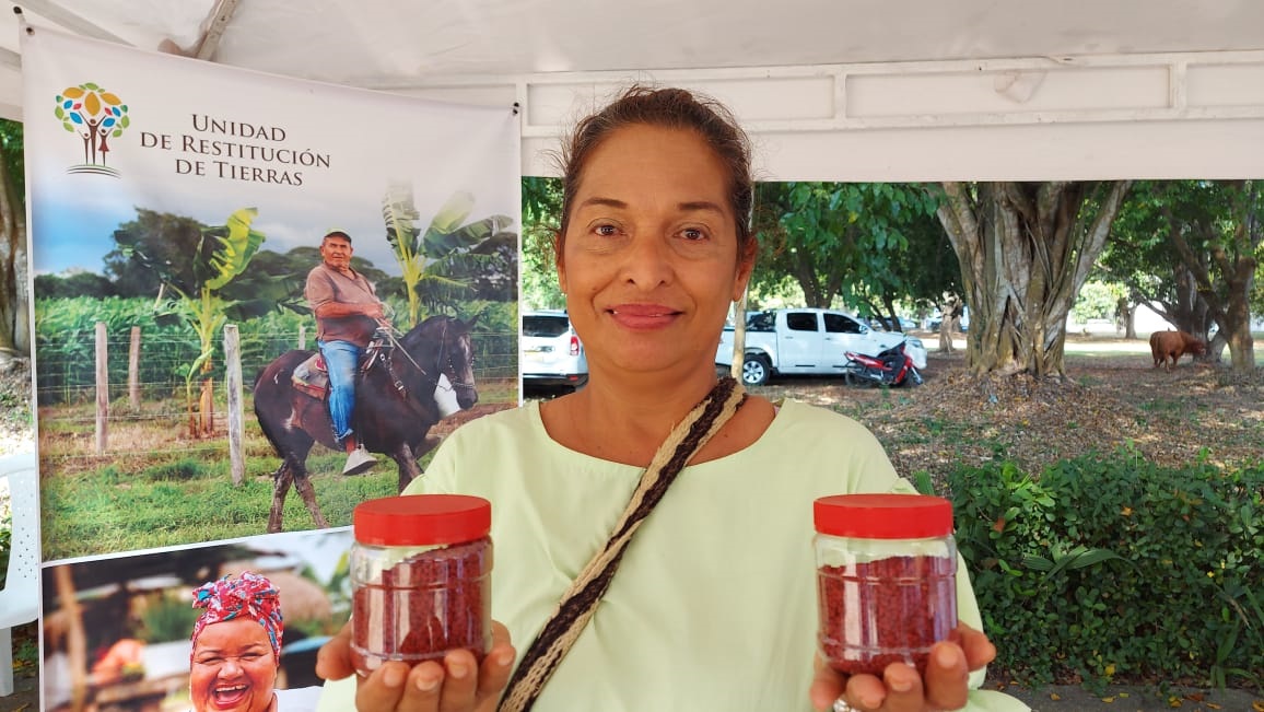 “Desde que llegó restitución a mi vida, me proyecté en reconstruir lo perdido y aprovechar al máximo nuestra parcela, es por eso que lidero junto a otras mujeres la iniciativa del cultivo de achiote porque veo un gran potencial de producción en nuestras tierras, comercialización nacional y gran futuro para la exportación”, expresó María Claudia Ruiz, beneficiaria de la Unidad en Tierralta, Córdoba.