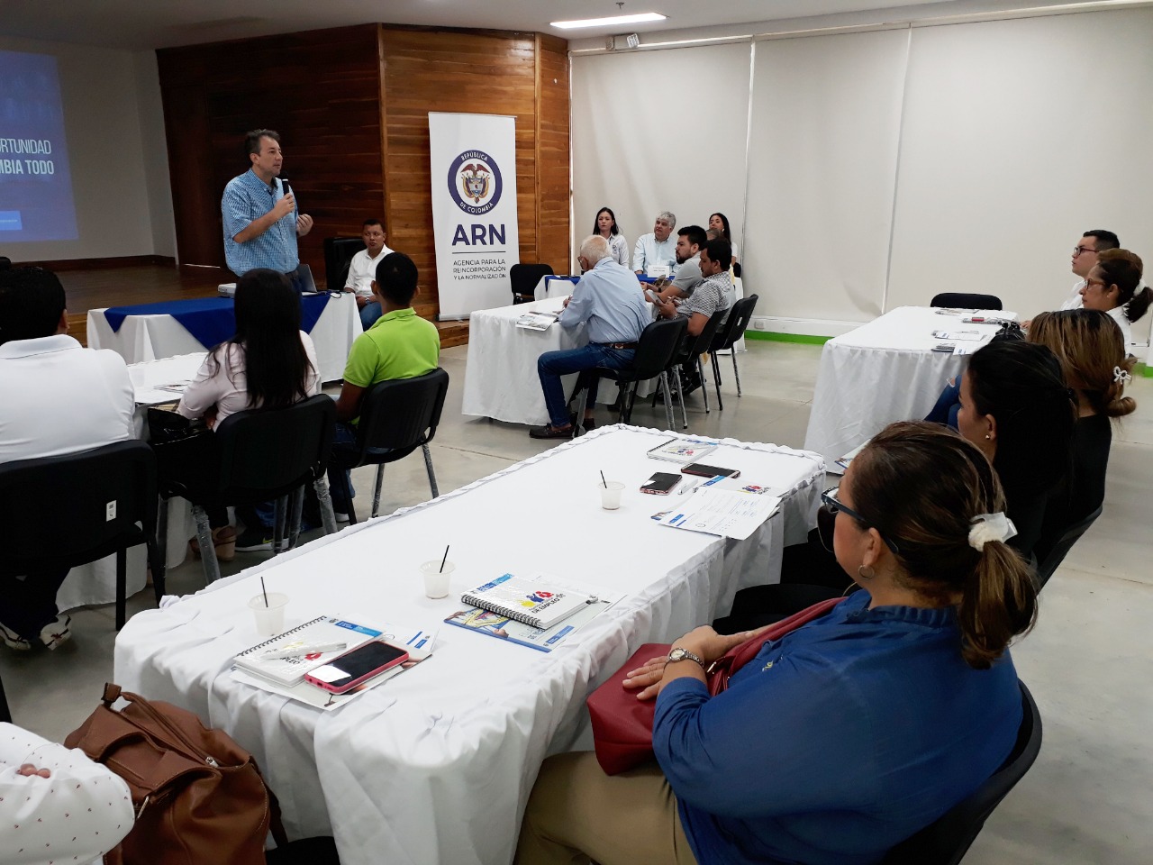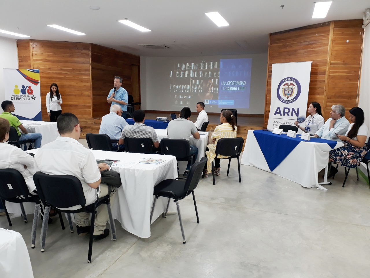 El Encuentro Empresarial se llevó a cabo en el Centro Verde de Montería y contó con la participación de Víctor Manuel Ariza Palma, director regional del SENA; Adriana Noreña, coordinadora del grupo territorial Córdoba de la ARN y Katherine Sepúlveda de esta misma entidad, así como con Ernesto Vergara, Secretario de Competitividad y Cooperación Internacional de la Gobernación de Córdoba y Edgar Garcés Abdala, Secretario del Interior Departamental.