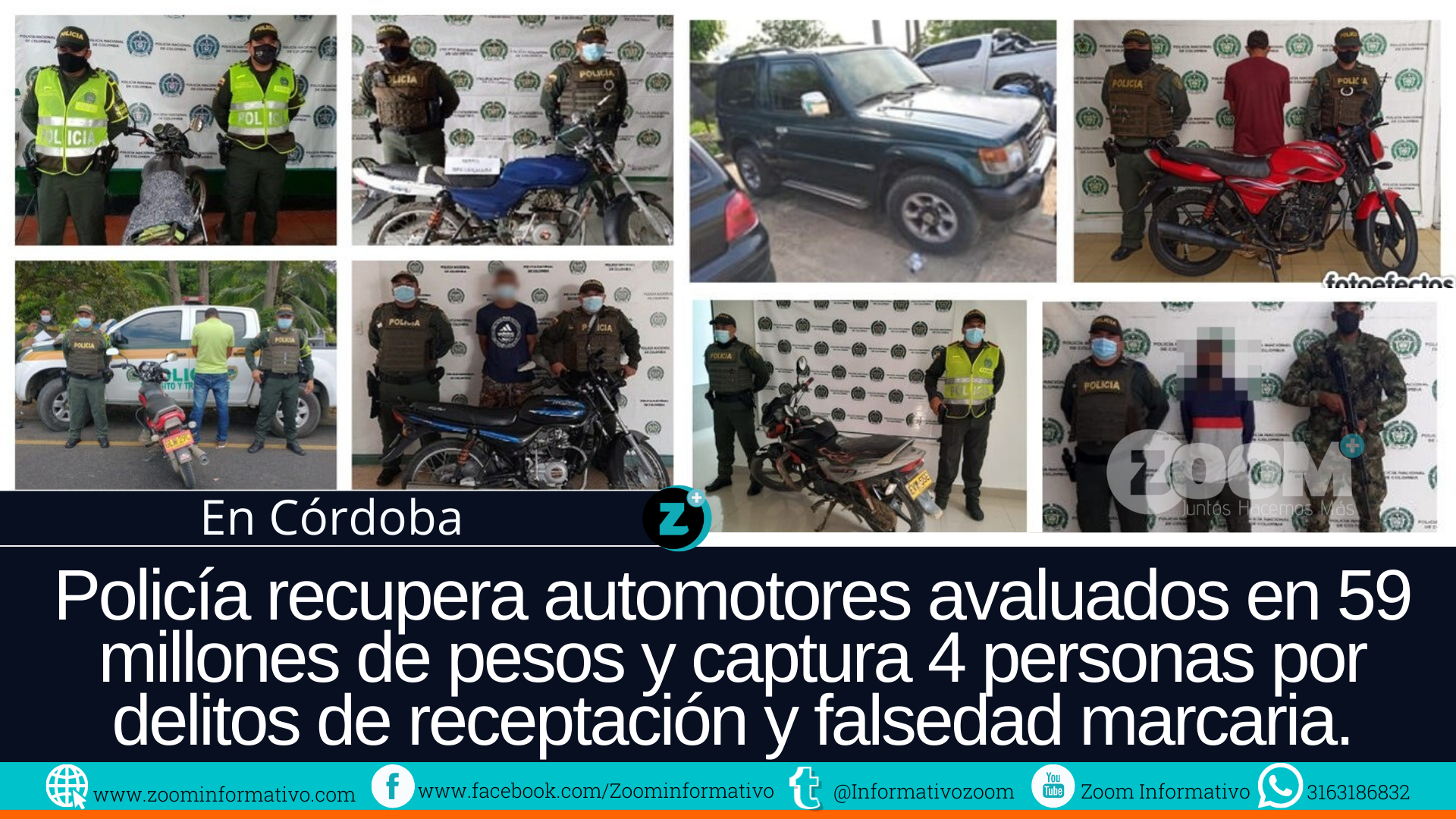 La Policía Nacional continúa desarrollando controles de manera permanente en los municipios de Córdoba, a fin de prevenir la comisión de diferentes delitos, especialmente el homicidio. Así mismo, invita a denunciar oportunamente a la línea emergencia 123 desde cualquier dispositivo móvil.
