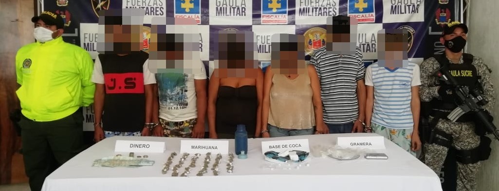 En el lugar de los hechos había más de 2700 dosis de marihuana y clorhidrato de cocaína, también se encontraron 2 armas de fuego, 22 cartuchos calibre 38 mm, 2 celulares y cuadernos, donde llevaba tanto la contabilidad como el registro de todos los puntos de distribución de las sustancias; estos estupefacientes estaban valorados en más de 77 millones de pesos.