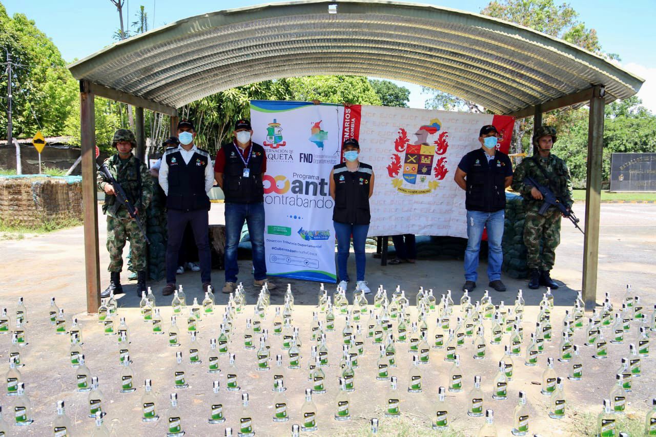 Región. Soldados del Batallón de Ingenieros de Combate N.º12 de la Décima Segunda Brigada del Ejército Nacional, en un trabajo interinstitucional con el Programa Anticontrabando de la Alcaldía del municipio de Florencia, departamento de Caquetá, logran la incautación de 240 botellas de aguardiente, presuntamente adulterado.