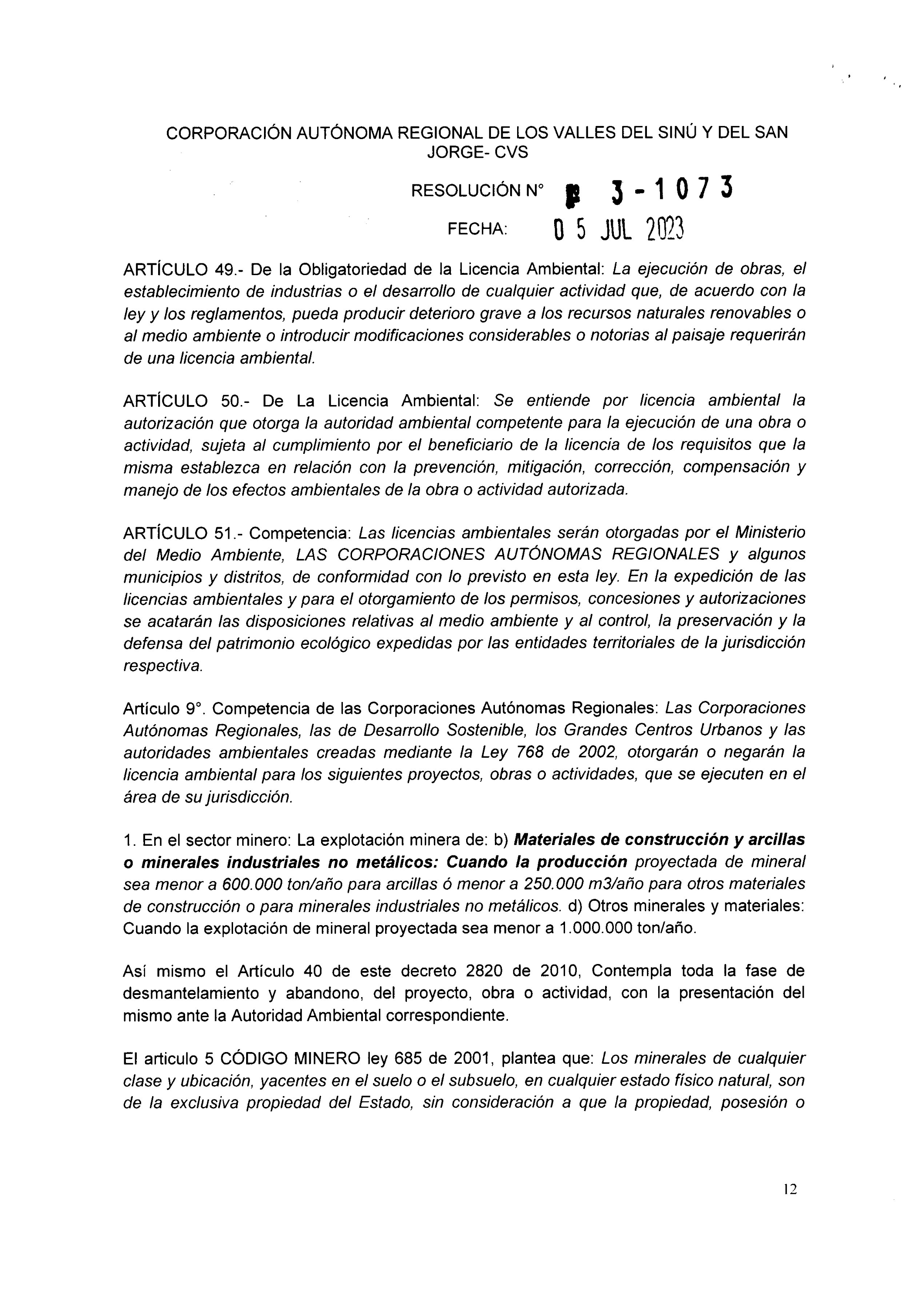 El “proyecto de explotación de minerales denominada "Mina La Estrella", viene realizando incumplimiento a las normas ambientales al estar realizando presunto vertimiento ilegal a la quebrada Anchica, sin contar con el respectivo permiso de vertimiento, no reportó a la CVS, el incidente consistente en la represión de las aguas estancadas y su posterior evacuación, no realizó la socialización del Plan de Contingencia con los diferentes actores como son Consejo Municipal de Gestión del Riesgo, comunidad del área de influencia y no allegó actas y soportes de socialización a la CVS, lo cual indica un incumplimiento en la activación de su Plan de Contingencia, es fundamental imponer Medida Preventiva para evitar un deterioro o puesta en peligro de los recursos naturales y del medio ambiente".