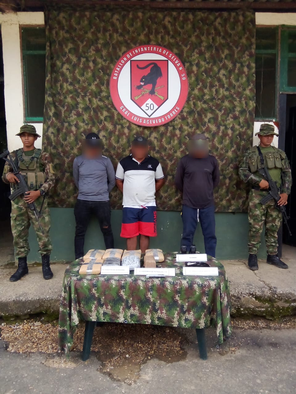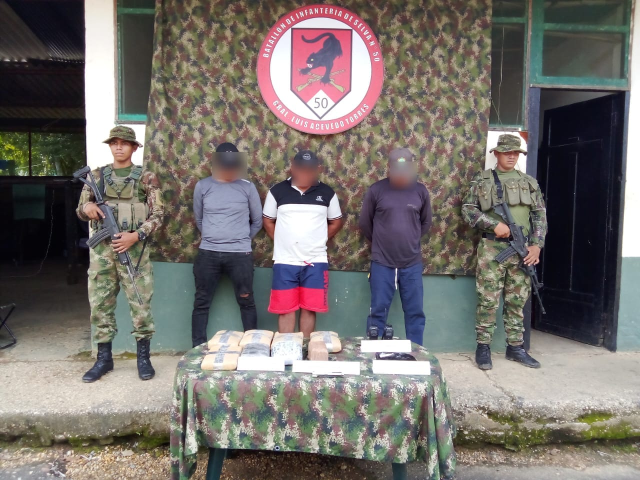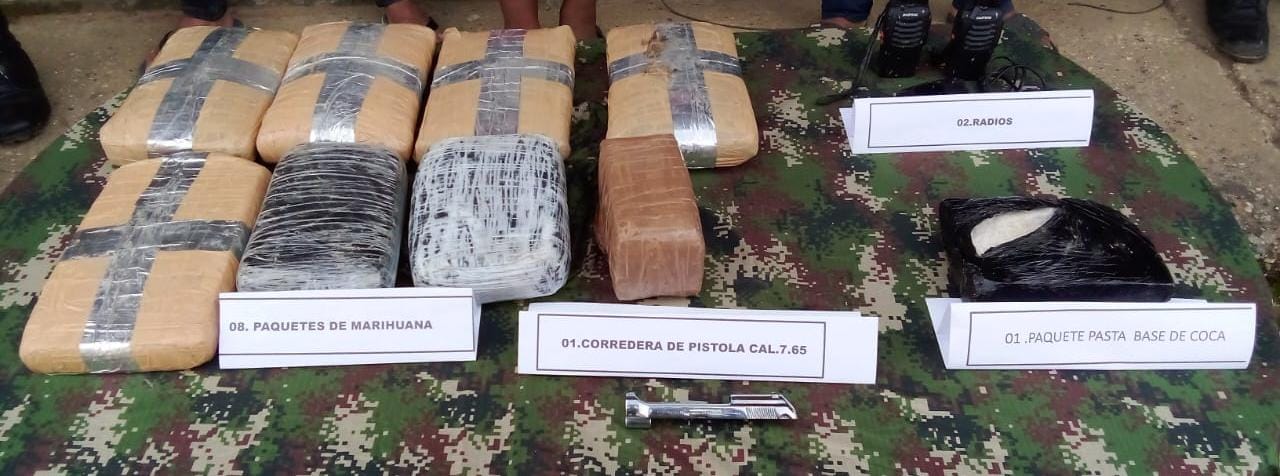 Amazonas. En desarrollo de operaciones militares adelantadas por soldados de la Brigada de Selva N.° 26 del Ejército Nacional, en coordinación con la Policía Nacional, en el área general de La Pedrera, en el departamento del Amazonas, se logró la captura en flagrancia de tres sujetos, al parecer pertenecientes a las redes de apoyo a las estructuras residuales (RAER) del grupo armado organizado residual Estructura Carolina Ramírez, a quienes les fueron incautados 8 kilogramos de marihuana, 1 kilogramo de pasta base de coca, así como dos radios y material de intendencia de uso privativo de las Fuerzas Militares. Así lo confirma el Coronel Víctor Portilla, Comandante de la Bridgada Selva N° 26.