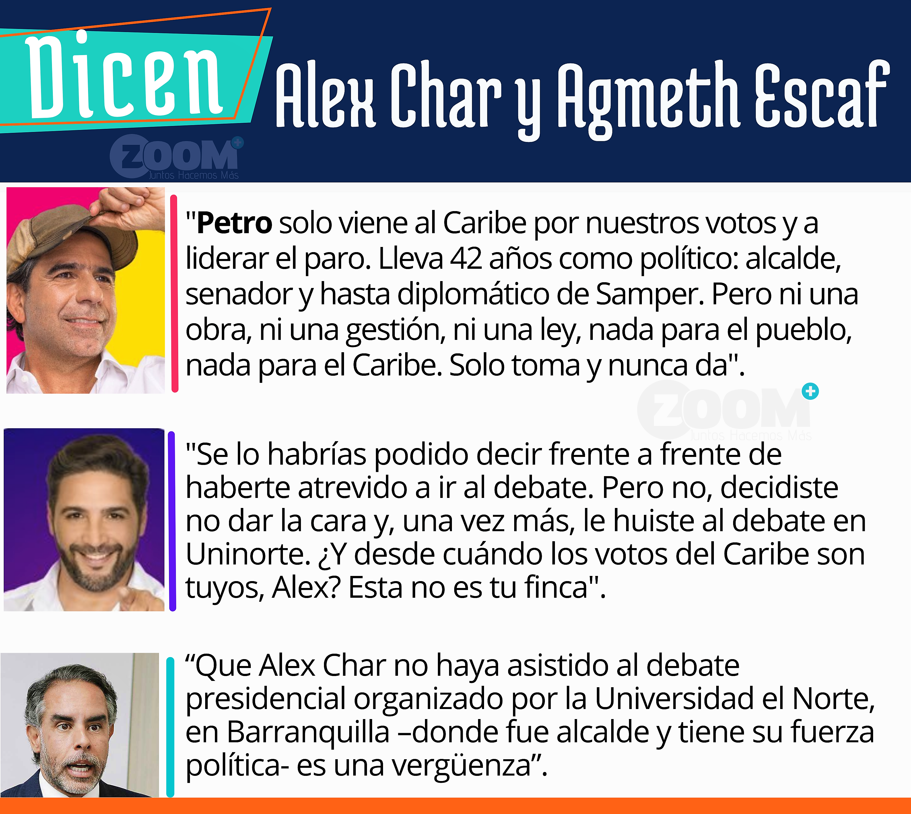 También agregó. “Alex Char demostró su falta de güevas de verdad al no ser capaz de venir al debate. Además, es una falta de respeto que haya convidado a los demás miembros de Equipo Colombia a no acudir al debate en la UniNorte”. Refiriéndose a este debate liderado por los jóvenes https://www.uninorte.edu.co/.../dere.../presidenciables-2022