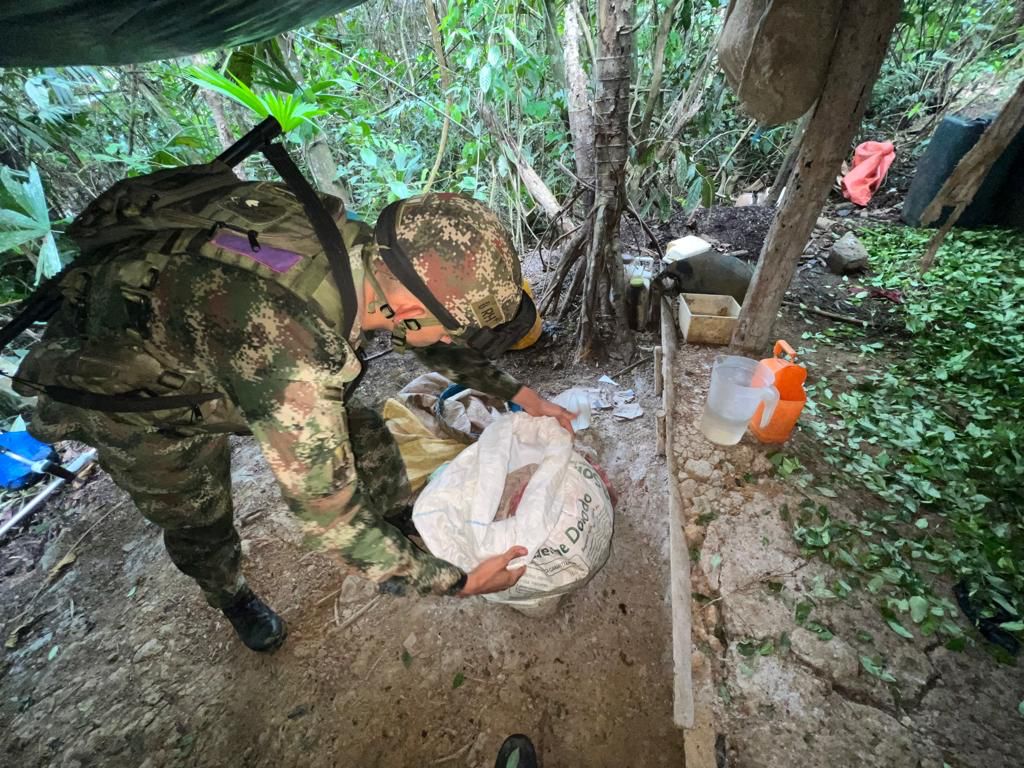 En la acción militar se encontró una estructura en madera con 6 pimpinas de gasolina, 3 pimpinas de amoniaco, cerca de 60 galones con ACPM, pesas, 36 kilogramos de cal, 2 prensas, 25 kilogramos de cemento, urea y fertilizante. En lo que va corrido del año, los soldados del Batallón de Operaciones Terrestres N.° 23 han ubicado y destruido en el sur de Córdoba 21 laboratorios para la fabricación de pasta base de coca, lo que sigue debilitando las finanzas ilícitas del GAO 'Clan del Golfo', el cual delinque en esta región del país.