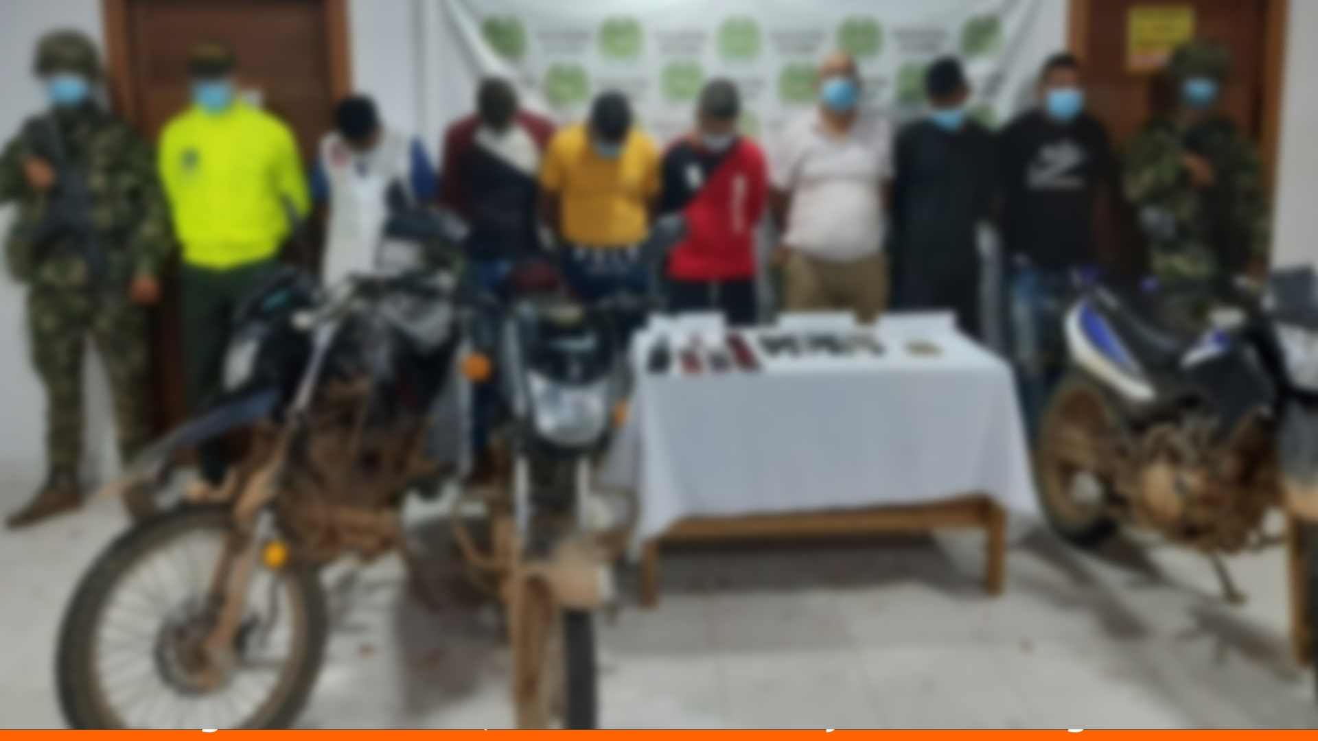 Fue así como, mediante la realización de diligencia de registro y allanamiento a un inmueble en El Porvenir, en Montelíbano, los uniformados capturaron a José Arroyo alias ‘Caballo’ o ‘Julián’, Jorge Higuita, alias ‘Pirata’ o ‘Mancuso’, Andrés López, alias ‘El Flaco’, Alexander Paternina, alias ‘El Enfermero’, José Vergara, Yorman Salgado y Luis Martínez.