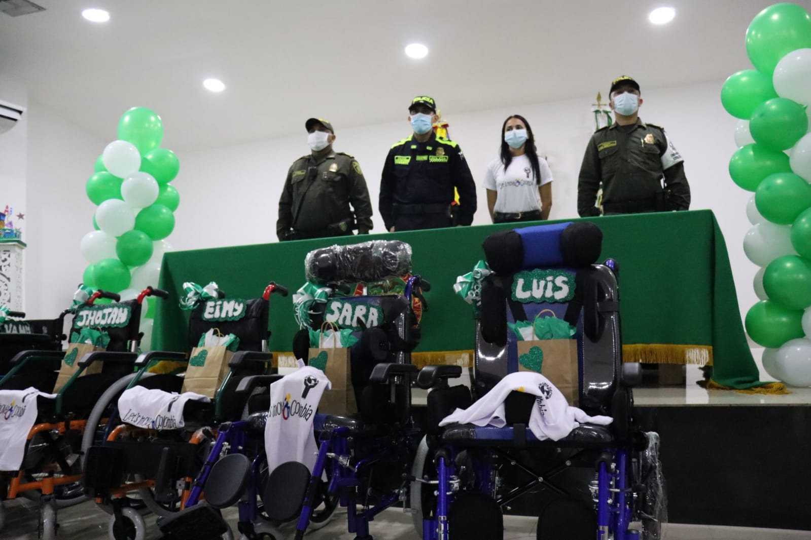 Córdoba. Uniformados de la seccional protección y servicios especiales en el grupo de infancia y adolescencia realizaron gestión con la Fundación ‘Yes, we server’, para la donación de 6 sillas de ruedas a niños de escasos recursos y con problemas de movilidad.