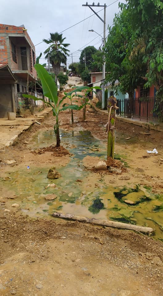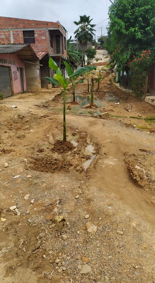 La comunidad que recurrió a la particular protesta, sembrando matas de Plátano en dicha calle, solo pide que la administración retome el proceso de pavimentación, pues ellos están siendo afectados, pues no hay manera de transitar por esta calle, además el estado de la calle con agua estancada genera zancudos que afectan a todos.