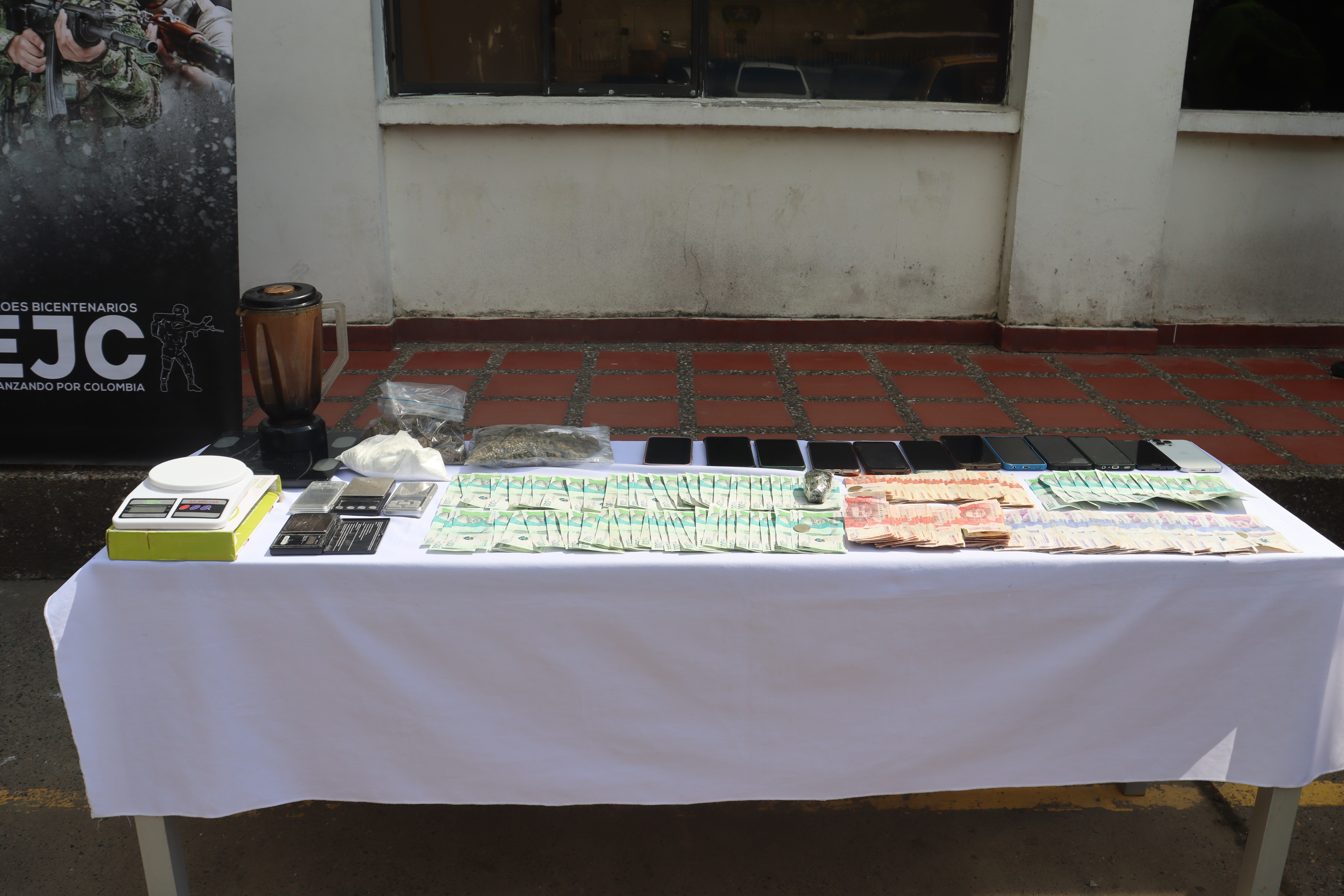 Como resultado total de los diferentes allanamientos fueron incautados 13 Celulares, 02 Motocicletas, 01 vehículo tipo taxi, 07 grameras, 01 Licuadora, 01 portátil, $20.575.000 en diferentes nominaciones al parecer producto de la venta, Elementos para armar cigarrillos artesanales, Aproximadamente 573 gr de Marihuana, Aproximadamente 76 gr de Clorhidrato de Cocaína y 5 pastillas de éxtasis. Los capturados y los elementos materiales probatorios incautados fueron presentados ante la Fiscalía General de la Nación, donde un Juez de la República definirá su situación jurídica y penal.