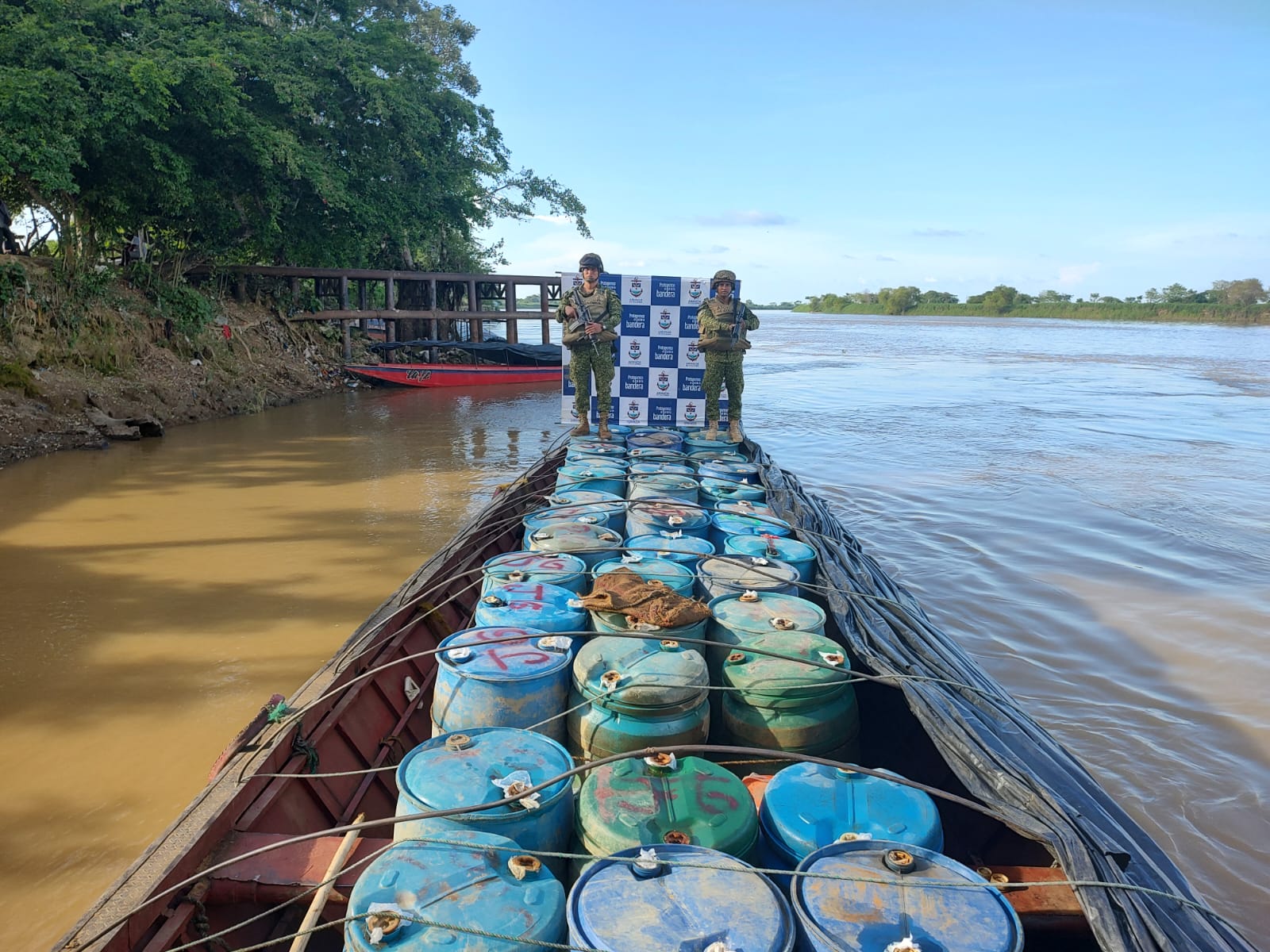 Al momento de las inspecciones a las embarcaciones y los vehículos, no fue presentado el certificado de carencia de estas sustancias controladas por la Dirección Nacional de Estupefacientes, por lo que se presume sería usado para el procesamiento de clorhidrato de cocaína por parte de grupos armados organizados. Los insumos sólidos y líquidos incautados fueron puestos a disposición de las autoridades competentes.