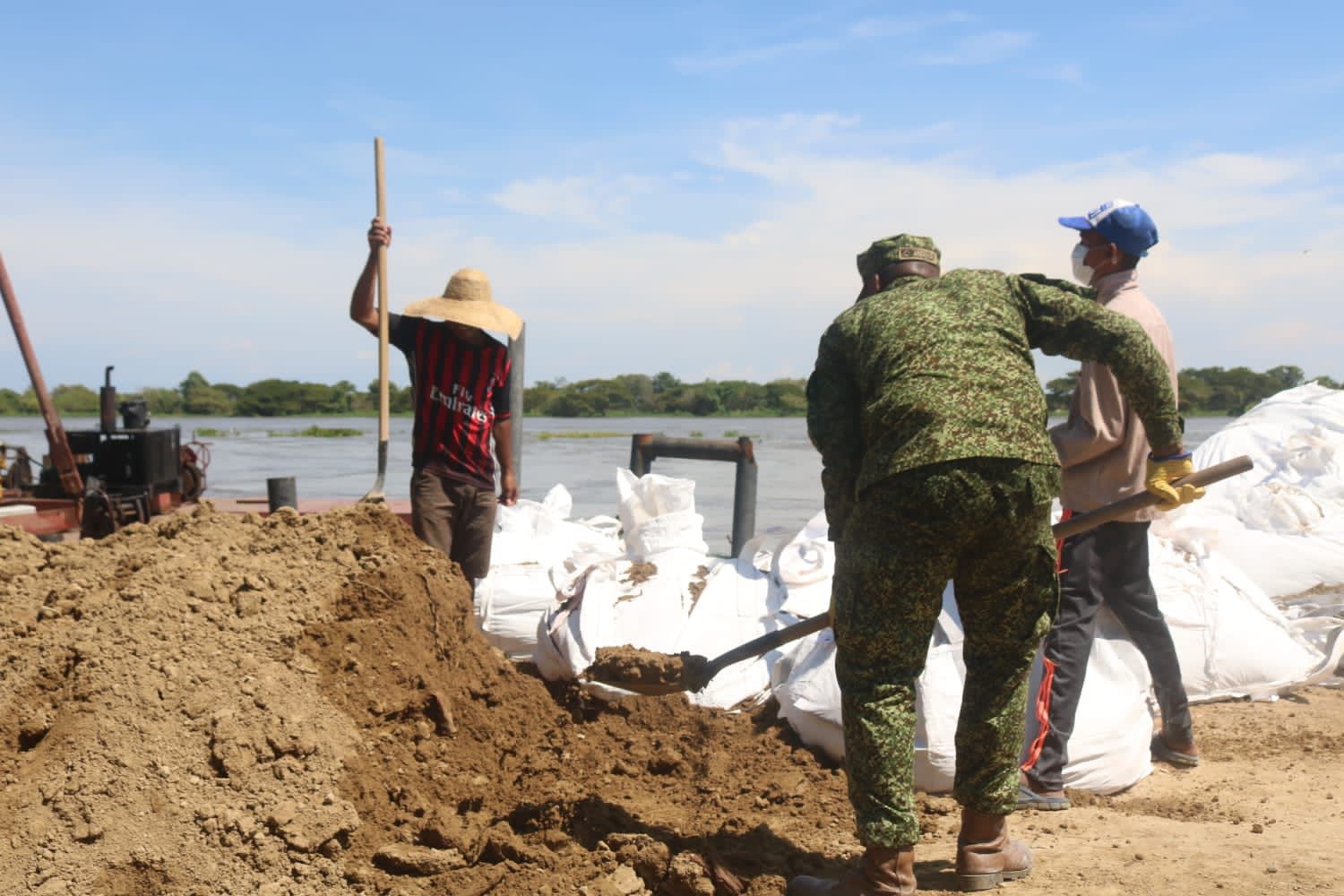 Más de 30 Infantes de Marina orgánicos del Batallón Fluvial de Infantería de Marina No.17, en una oportuna respuesta y con apoyo de la comunidad, han logrado poner alrededor de 1000 sacos de arena en la zona, los cuales permitieron proteger a los habitantes del barrio Girardot del desbordamiento, al bloquear el ingreso de agua, y recuperar el cauce normal del afluente.