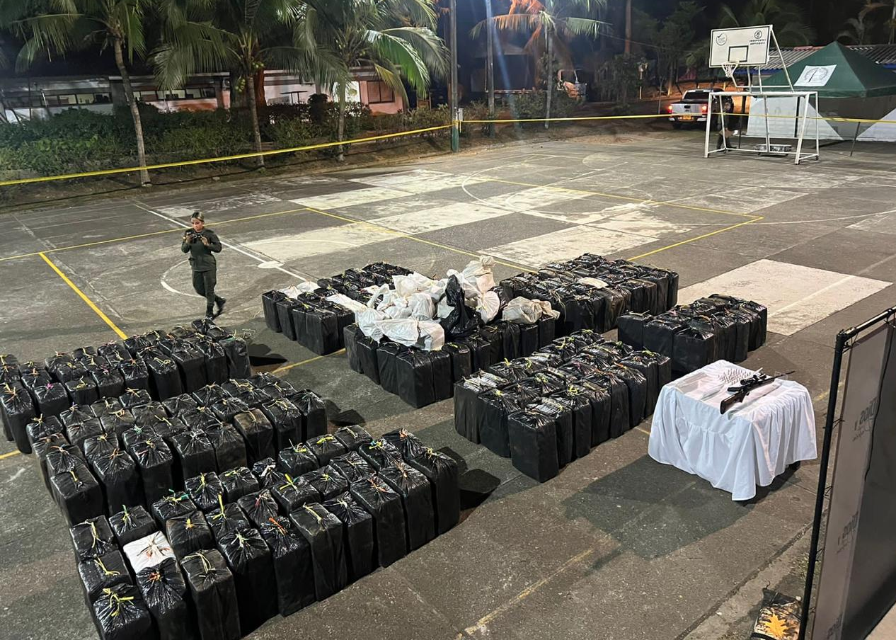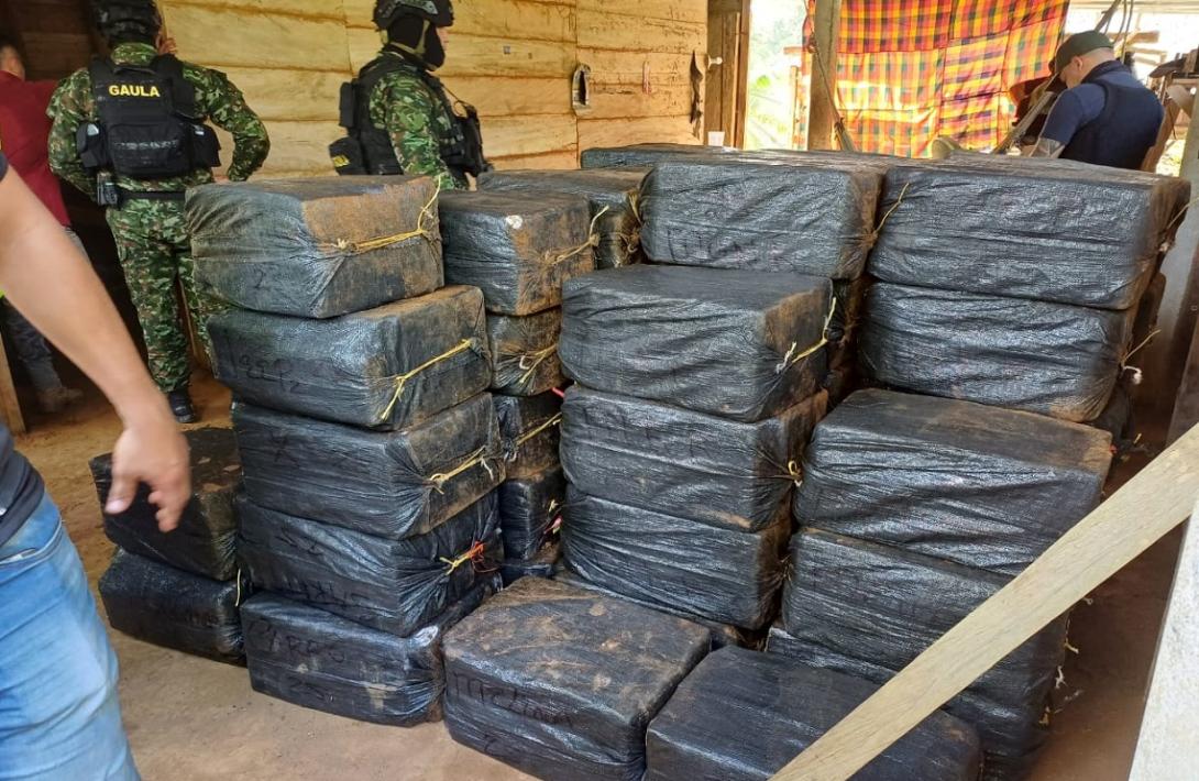 El hallazgo se produjo en zona rural de Necoclí, en la subregión del Urabá antioqueño. Hasta el lugar llegaron uniformados del Gaula Militar del Ejército Nacional y la Policía, quienes hallaron al interior de una vivienda de madera un depósito ilegal con la droga.