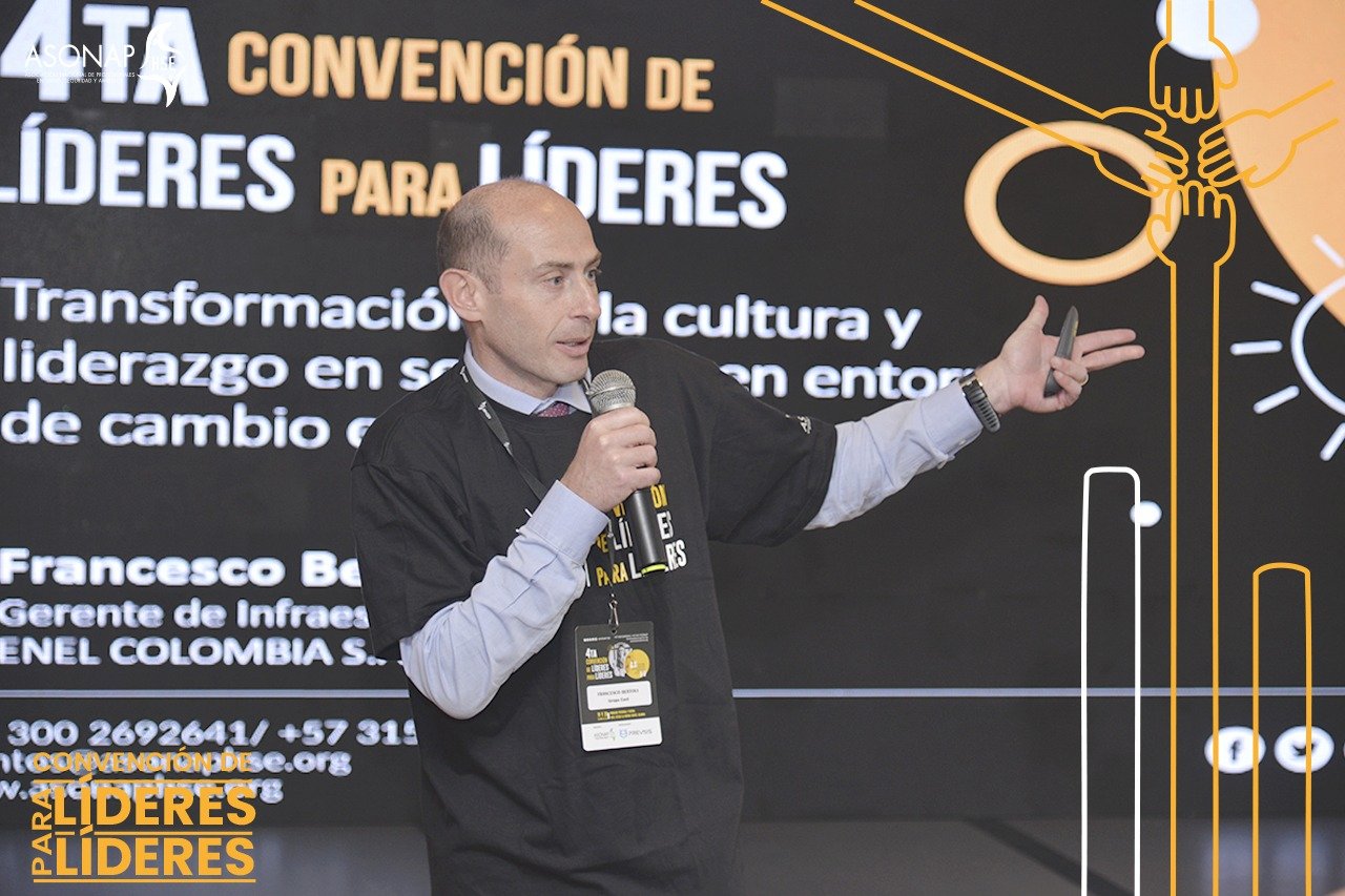 Francesco Bertoli, Gerente de Infraestructura y Redes en ENEL Colombia, quien expuso que la cultura de seguridad se construye a través del ejemplo y de una correcta gestión de la información y comunicaciones al servicio de todos, considerando el conocimiento técnico en terreno, la evolución de jerarquías de control y los aportes productivos de la seguridad.