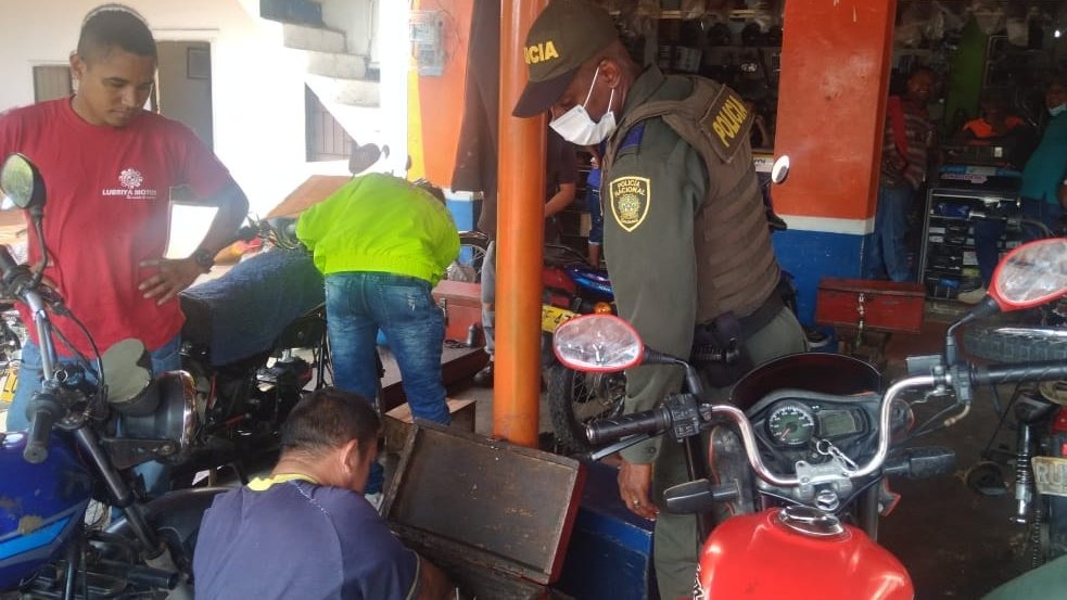 Córdoba. Con el fin de contrarrestar el hurto en todas sus modalidades, peritos expertos en la identificación de automotores de la Seccional de Investigación Criminal SIJIN, con apoyo de las unidades del Modelo Nacional de Vigilancia Comunitaria por Cuadrantes, realizan planes de verificación a talleres y almacenes de ventas de motocicletas, en los 25 municipios del Departamento de Policía Córdoba.