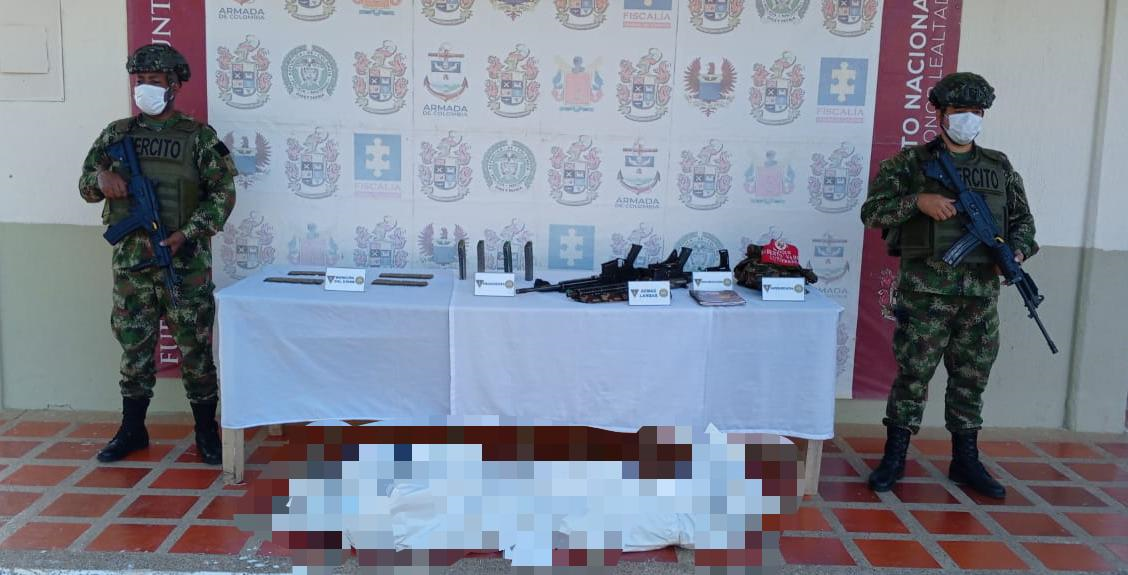 En este hecho murió en desarrollo de operaciones militares un presunto integrante de este grupo armado organizado. Asimismo, se incautaron dos fusiles, más de 190 cartuchos, cuatro proveedores, intendencia y material alusivo a este grupo criminal, el cual fue dejado a disposición de las autoridades competentes, según información oficial.