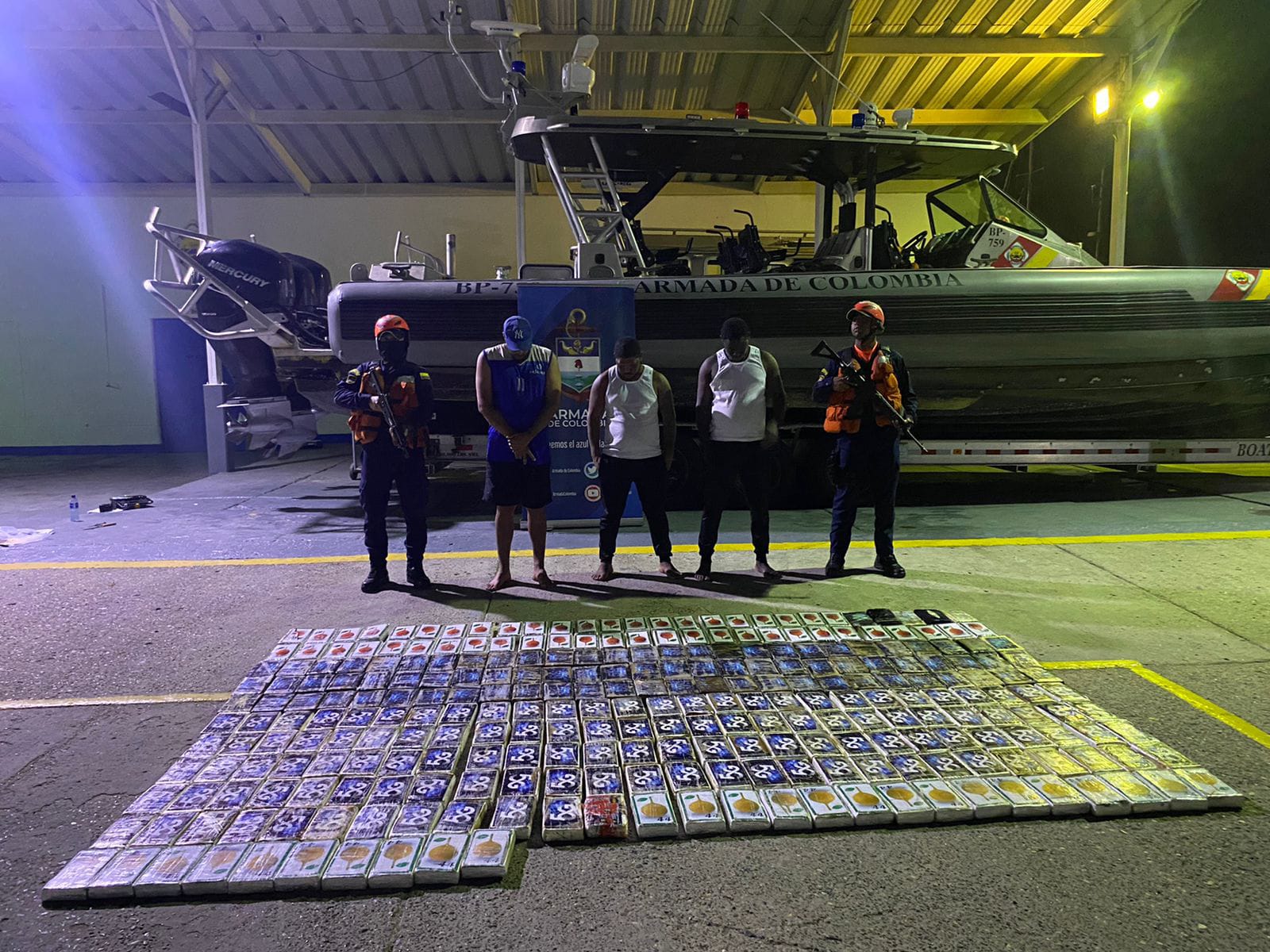 Continuando con las operaciones de control en la zona, en un esfuerzo coordinado entre unidades de Guardacostas y de Superficie, con apoyo de aeronaves del Grupo Aeronaval del Caribe y un avión de la Fuerza Aérea Colombiana, se detectó una lancha tipo Go fast tripulada por dos sujetos. Luego de la interdicción que se logró a 50 millas náuticas de Puerto Bolívar, los uniformados realizaron una inspección, encontrando 330.26 kilogramos de cocaína ocultos en la embarcación.