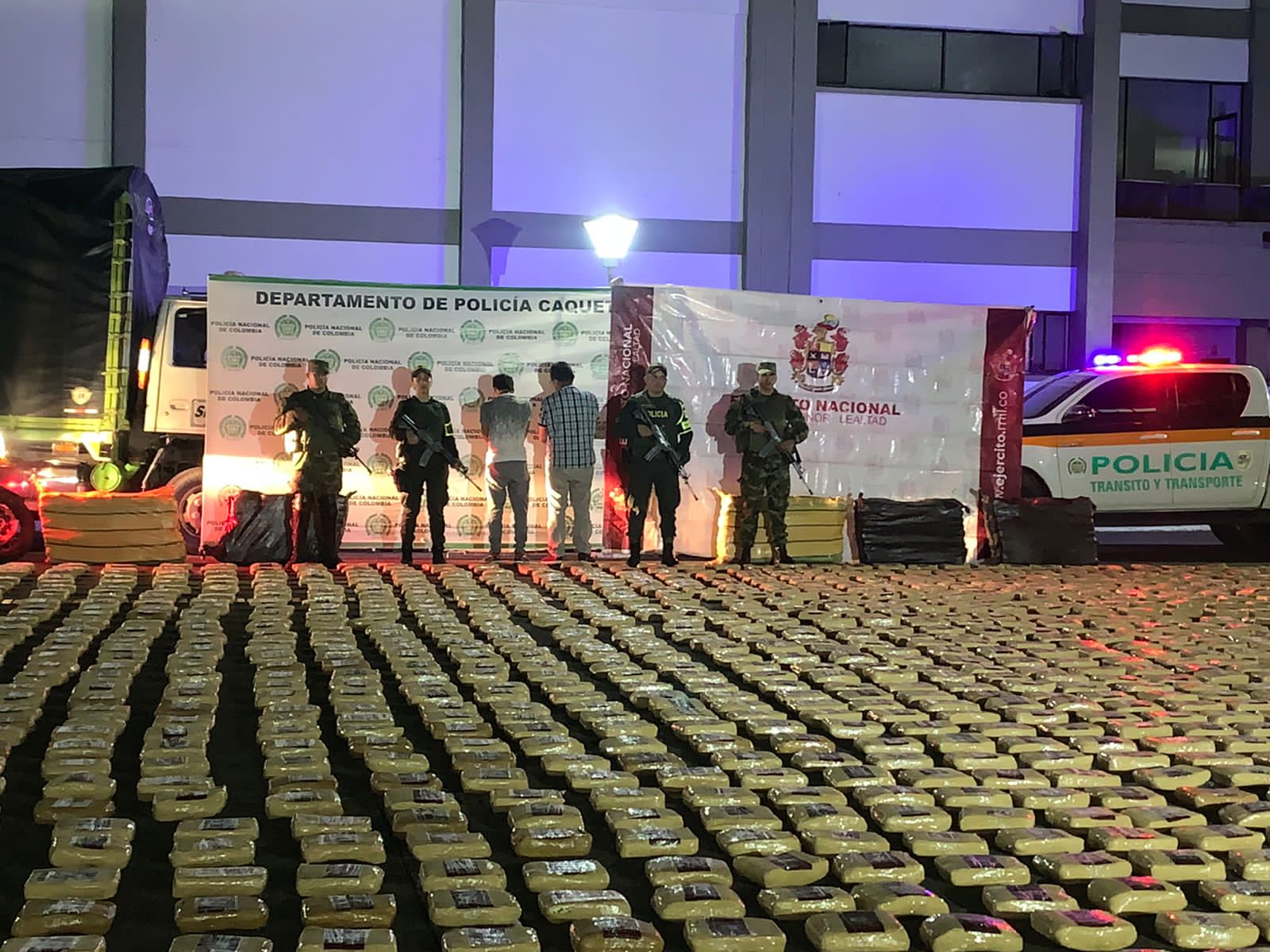El primer hecho se presentó en el sector de El Caraño, municipio de Florencia. Allí, en un camión fueron hallados 3000 kilogramos del narcótico. Los criminales, en su afán de desorientar a las autoridades, habrían intentado esconder el cargamento en lonas de concentrado para perros, pero gracias a la pericia de los militares y policías fue descubierta.
