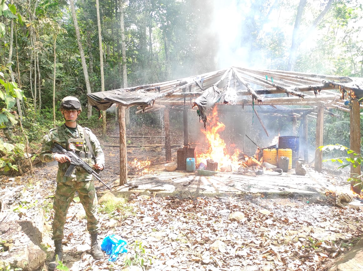 Región. Según fuentes oficiales, Soldados de la Décima Primera Brigada del Ejército Nacional, dando cumplimiento al Plan Estratégico Conjunto Ayacucho, ubicaron y destruyeron de manera controlada dos laboratorios para el procesamiento de pasta base de coca, al parecer pertenecientes al grupo armado organizado Clan del Golfo.