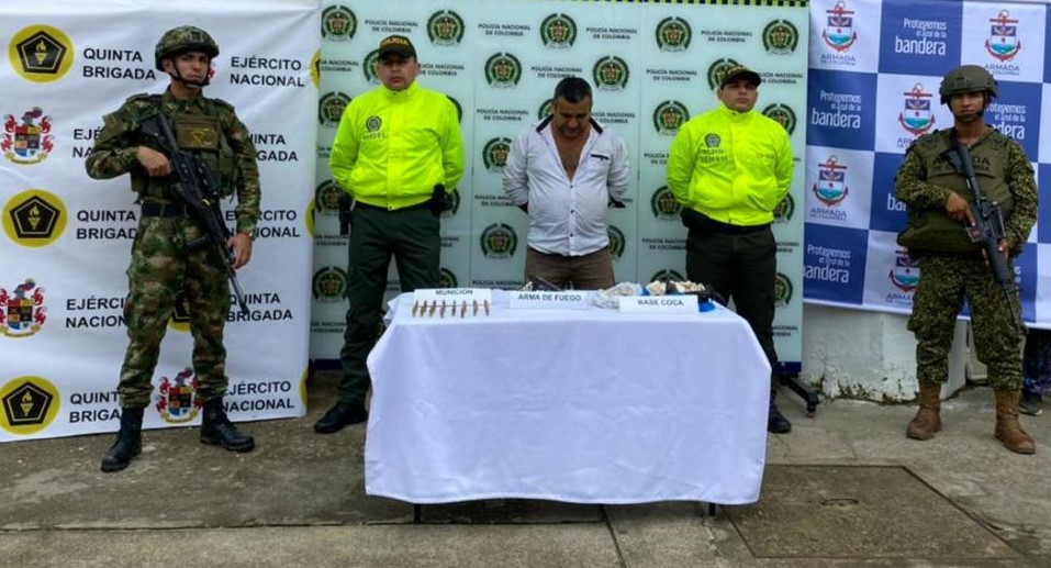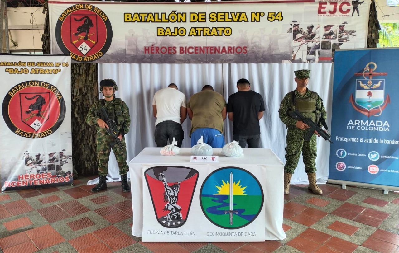 Entre tanto, tropas del Batallón de Infantería de Marina No.17 en conjunto con tropas del Ejército Nacional, sobre el río Magdalena, en el área general del municipio de San Pablo Bolívar, lograron la captura en flagrancia de un presunto integrante del Clan Del Golfo, a quien se le incautó una pistola calibre nueve milímetros, 50 cartuchos para la misma y tres kilogramos de pasta base de coca.