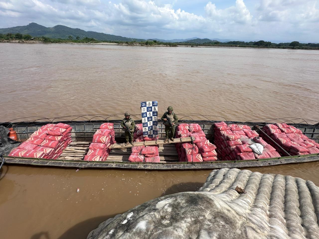 Tropas del Batallón Fluvial de Infantería de Marina No. 17 incautaron 700 bultos de cemento gris, cada uno con una capacidad de 50 kilogramos, los cuales eran transportados en una embarcación metálica tipo metrera sobre el río Cauca, sin contar con la documentación correspondiente que soportara su legalidad para el uso y transporte.
