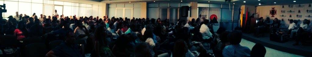 Cientos de personas en el auditorio San Jerónimo, de la Universidad Pontificia Bolivariana.